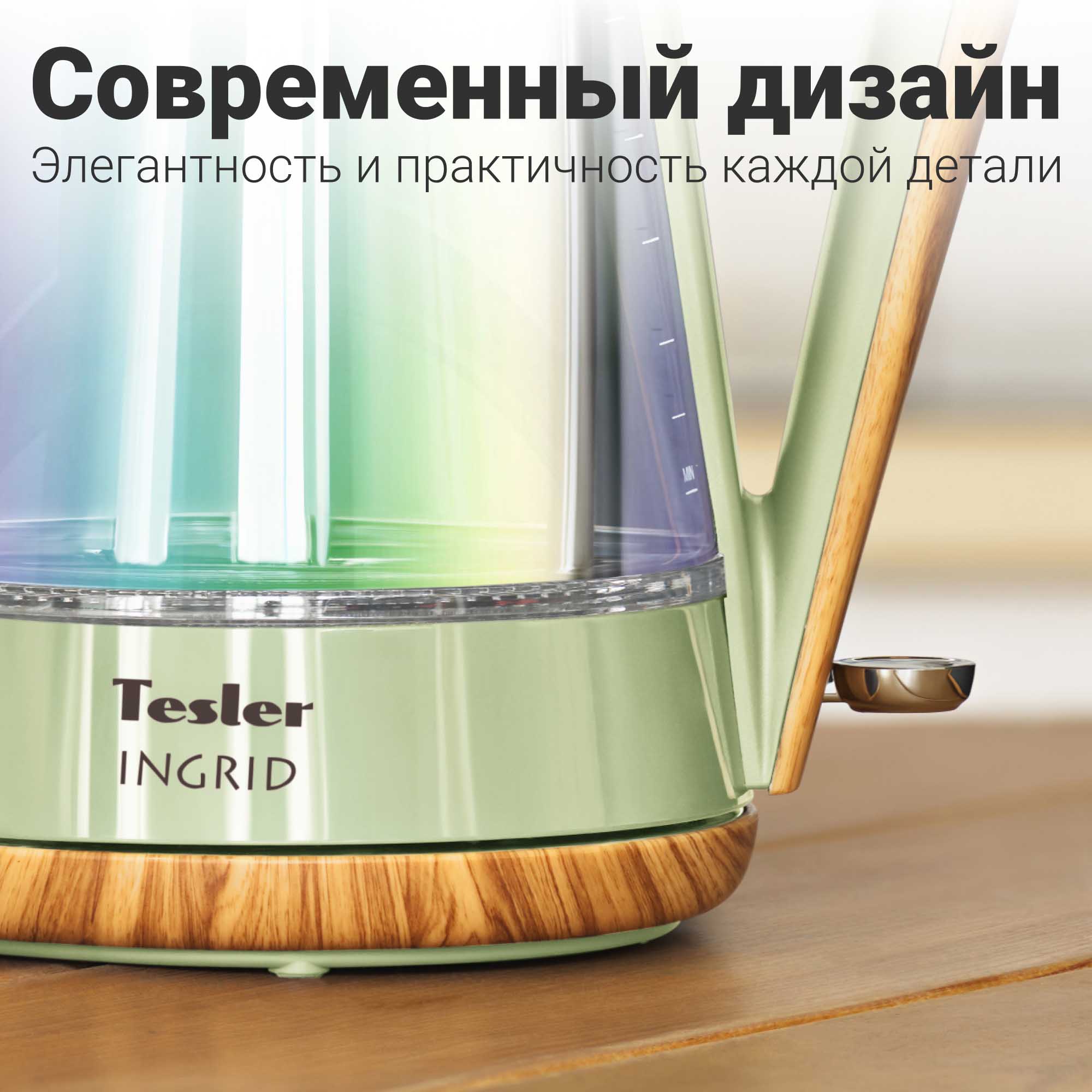 Электрочайник Tesler KT-1750 является частью коллекции INGRID, которая черпает вдохновение из скандинавского стиля, воплощая идею домашнего комфорта минималистичностью форм и спокойной цветовой гаммой.