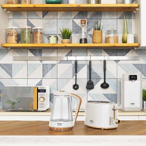 Окружите себя теплом и уютом вместе с линейкой бытовой техники Tesler INGRID. В комплект INGRID входят СВЧ-печь, чайник с корпусом из стекла, чайник из нержавеющей стали, тостер и термопот.