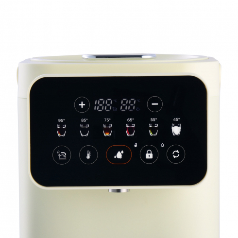 Благодаря точной системе нагрева с возможностью выбора температуры от 35°C до 95°C с шагом в 1ºC, позволяет заваривать напитки с учётом их особенностей, например, зелёный чай или детское питание. Функция автоматического поддержания температуры исключает необходимость повторного кипячения, а сенсорная панель с цветным дисплеем обеспечивает лёгкое и интуитивное управление. Дополнительная безопасность обеспечивается защитой от перегрева при низком уровне воды и блокировкой подачи воды при открытой крышке.