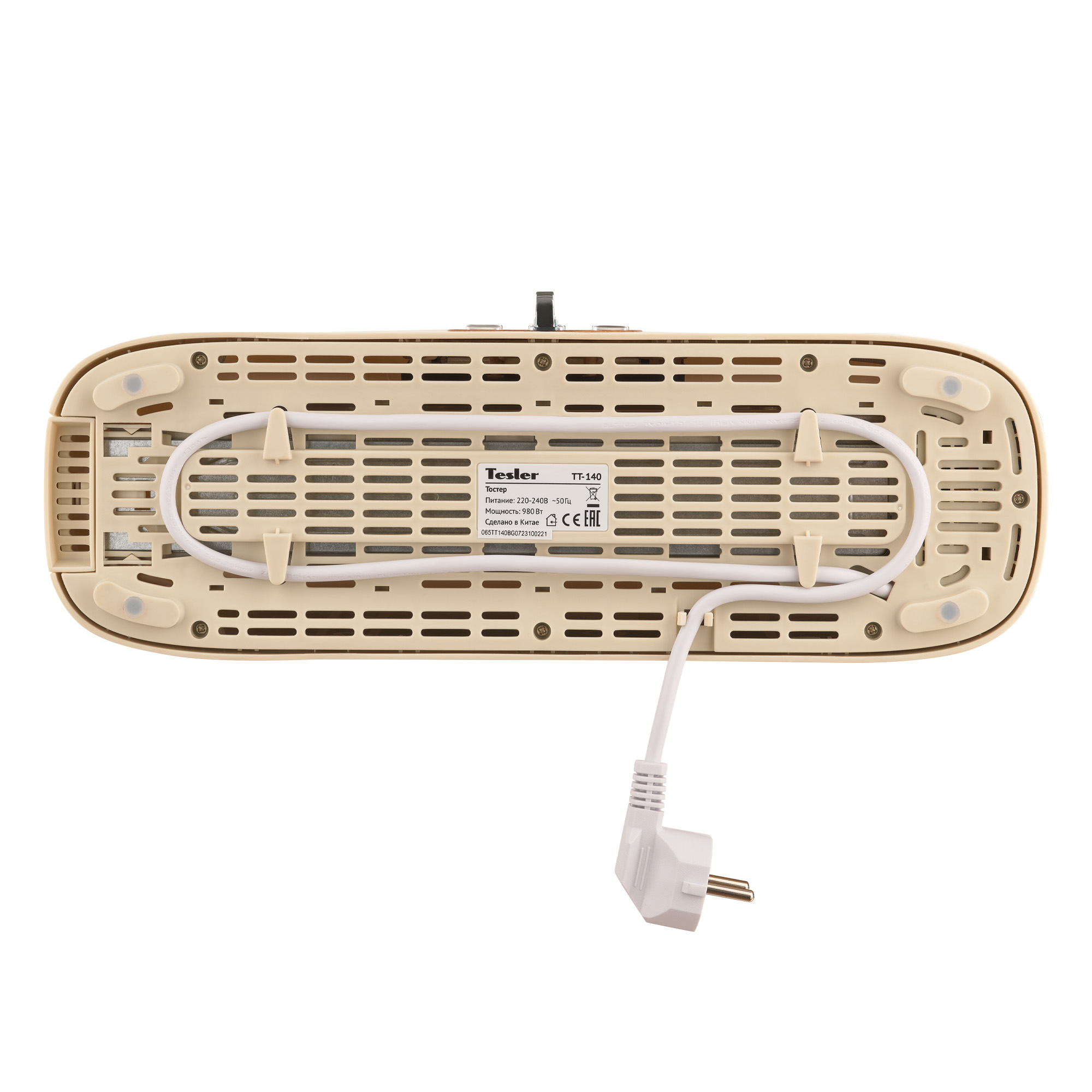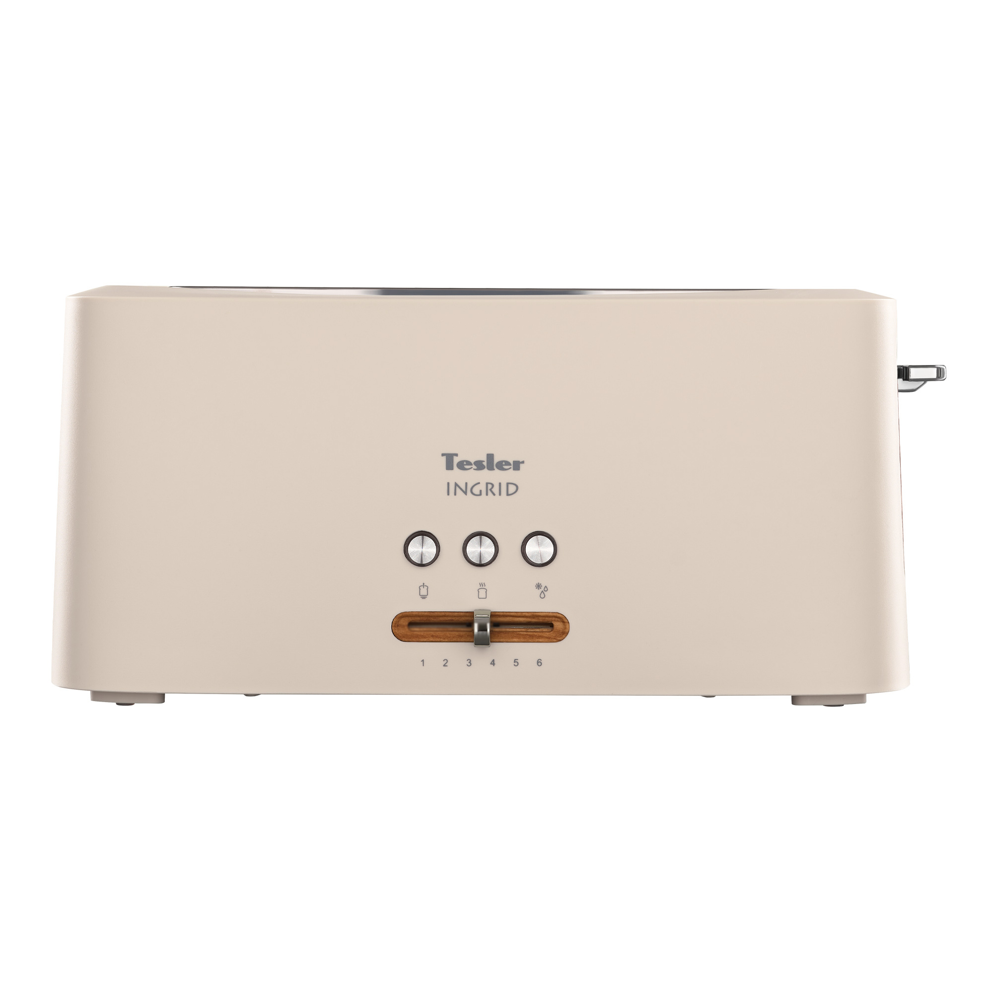 Тостер Tesler TT-140 из линейки кухонных приборов INGRID поможет приготовить равномерно прожаренные со всех сторон тосты. Благодаря своему тонкому корпусу устройство не только экономит место на кухне, но и позволяет одновременно приготовить два тоста рядом друг с другом, или же один длинный ломтик хлеба.