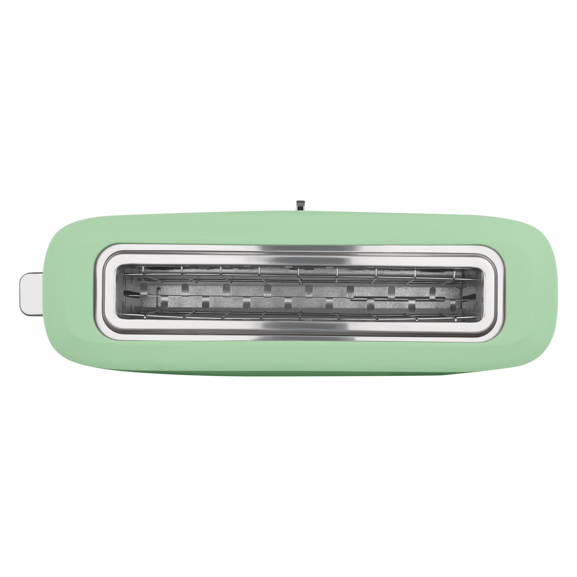 Слот из нержавеющей стали гарантирует долгий срок службы прибора. Корпус выполнен из высококачественного пластика, благодаря чему поверхность тостера не нагревается при работе.