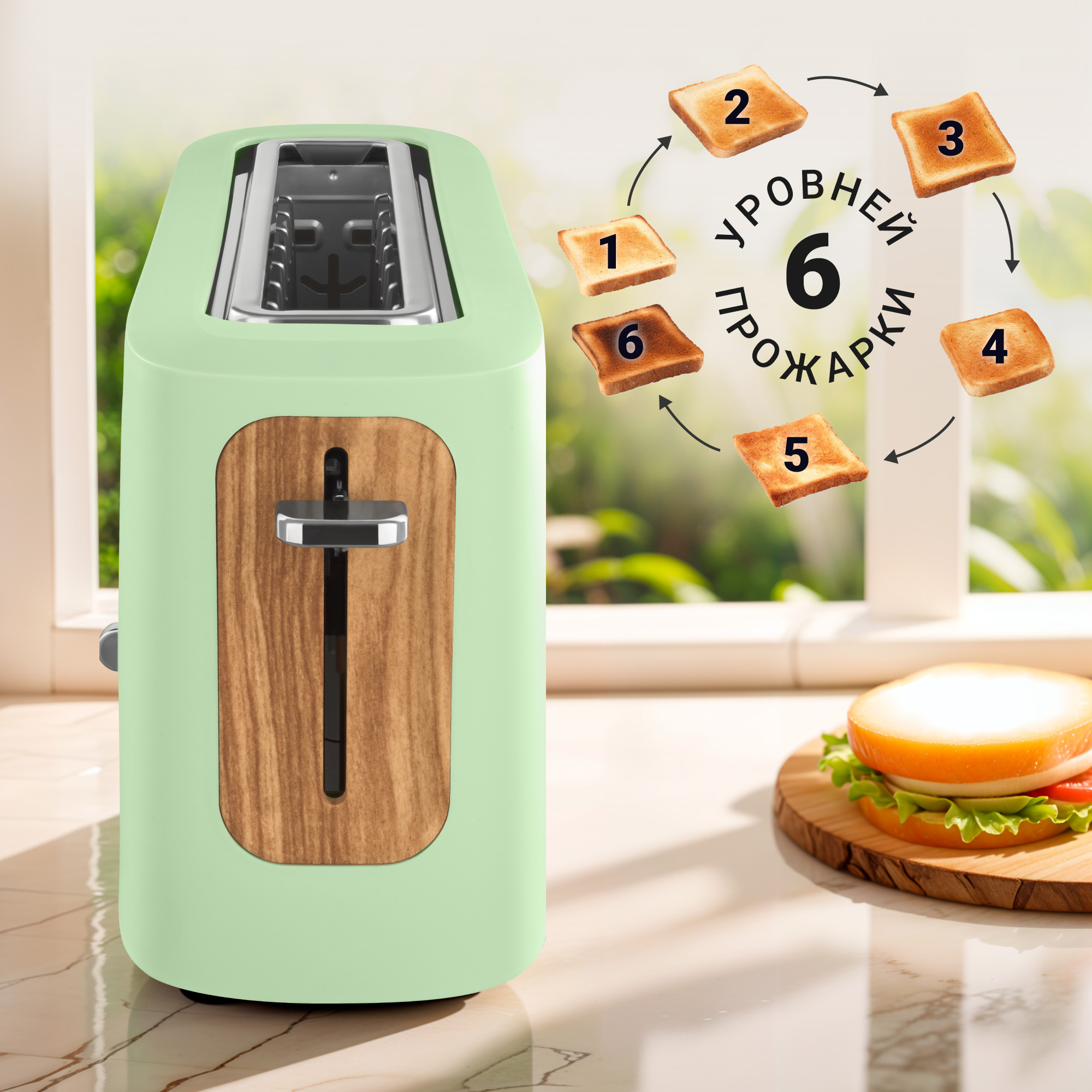 В случае перегрева тостер автоматически отключится, что защитит его от преждевременной поломки.