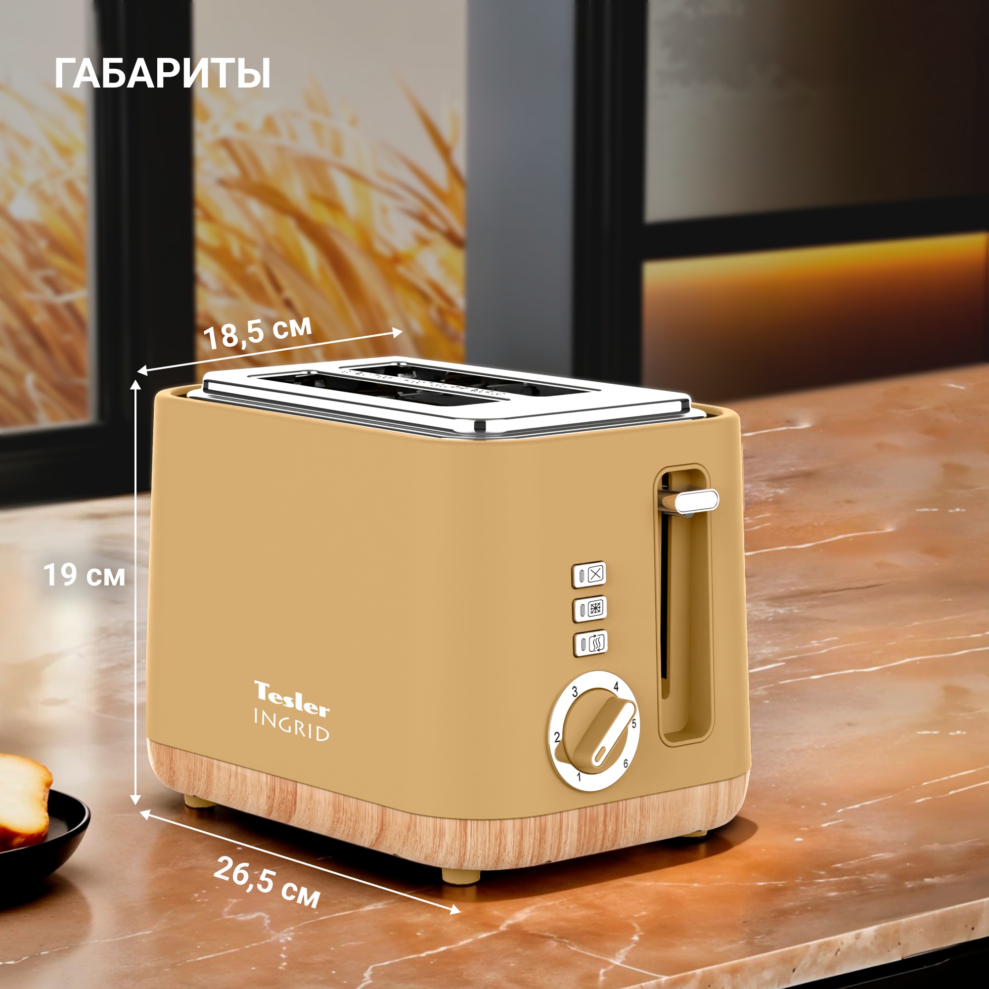 Тостер Tesler TT-244 из коллекции INGRID - функциональное и стильное решение для приготовления тостов. Модель воплощает лаконичный скандинавский дизайн, отличающийся чистыми линиями, декоративной вставкой под дерево и функциональностью. Устройство мощностью 815 Вт осуществляет быстрое поджаривание, разогрев или деликатную разморозку хлебных ломтиков. Шесть программных режимов позволяют настроить нужную степень прожарки — от нежной корочки до хрустящей текстуры.