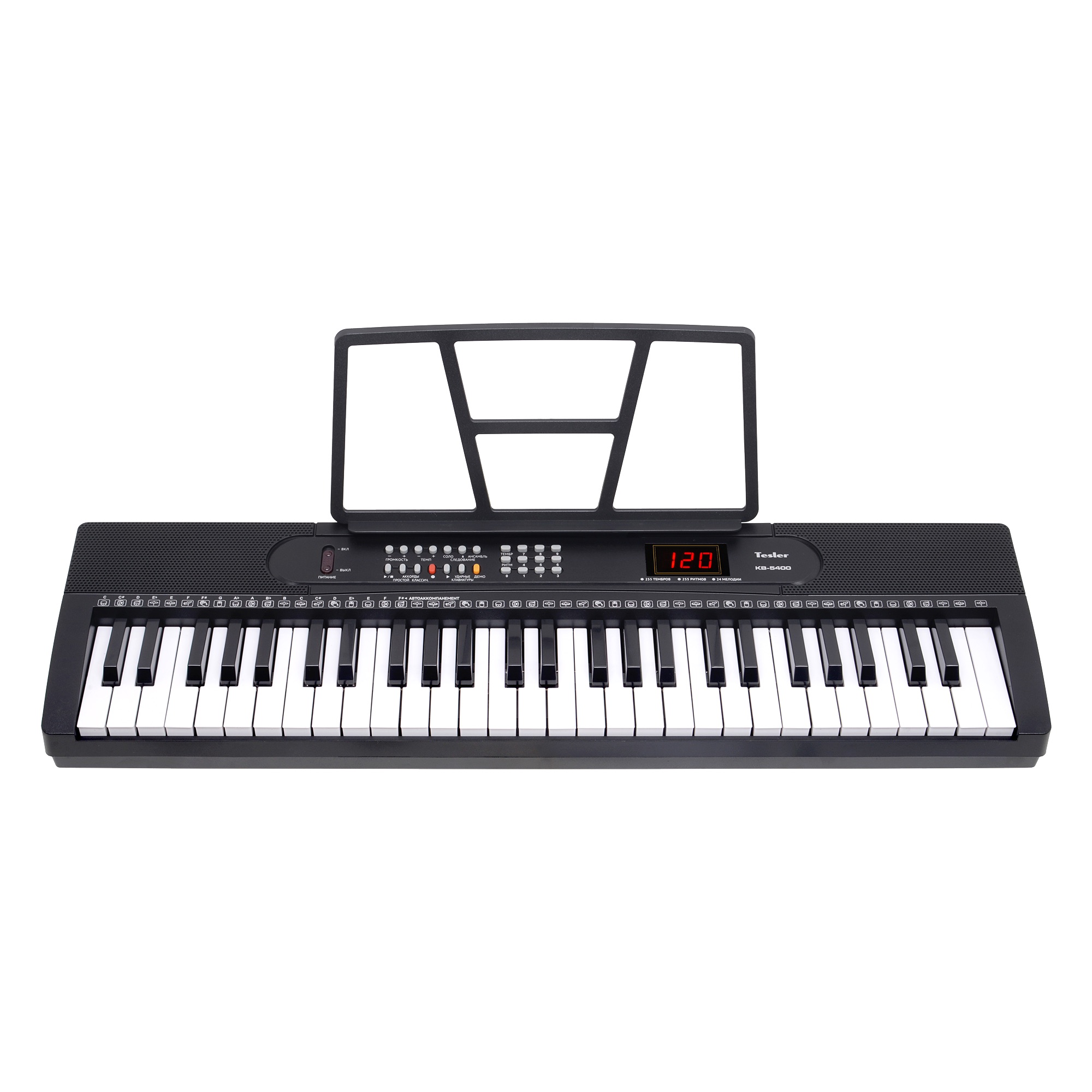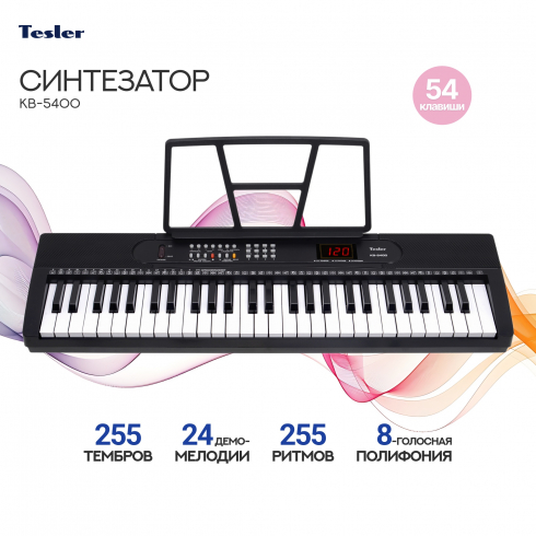 Синтезатор Tesler KB-5400 с клавиатурой на 54 клавиши и широким выбором тембров и ритмов, возможностью записи произведений, подойдет как для начинающих, так и продолжающих обучение.