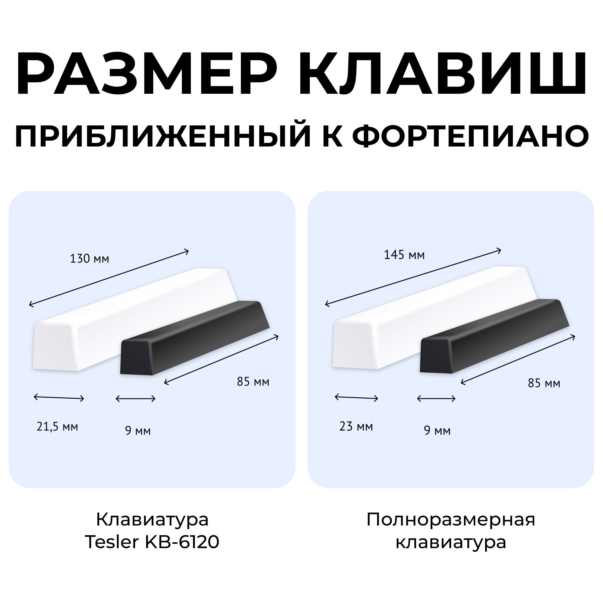 Tesler KB-6120 – синтезатор c чистым и реалистичным звуком, который имеет всё, что так необходимо новичку: