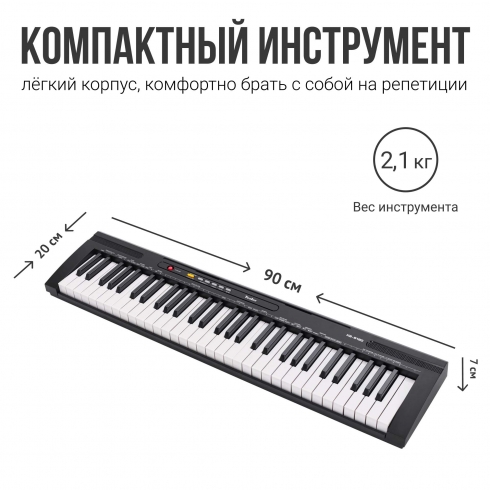 • Синтезатор Tesler KB-6120 — портативный инструмент весом всего 2,1 кг.