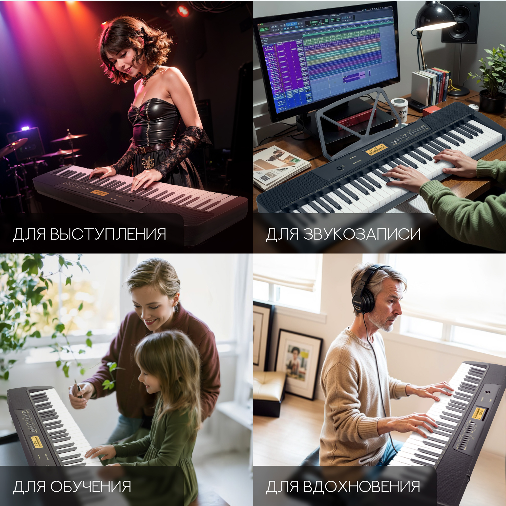 Измените звучание своей музыки с помощью добавления до 256 реалистичных звуков инструментов разных стран мира, от фортепиано до вибрафона. В вашем распоряжении также будут 256 стилей автоаккомпанемента, от джаза до сальсы, для красочного погружения в музыку со всего света. Функция памяти поможет сохранить 3 уникальных пресета, состоящих из выбранных вами тембров, ритмов и темпа. Таким образом, вы сможете создавать аранжировку электронной музыки, а функция памяти для сохранения выбранных параметров позволит менять пресеты во время исполнения.