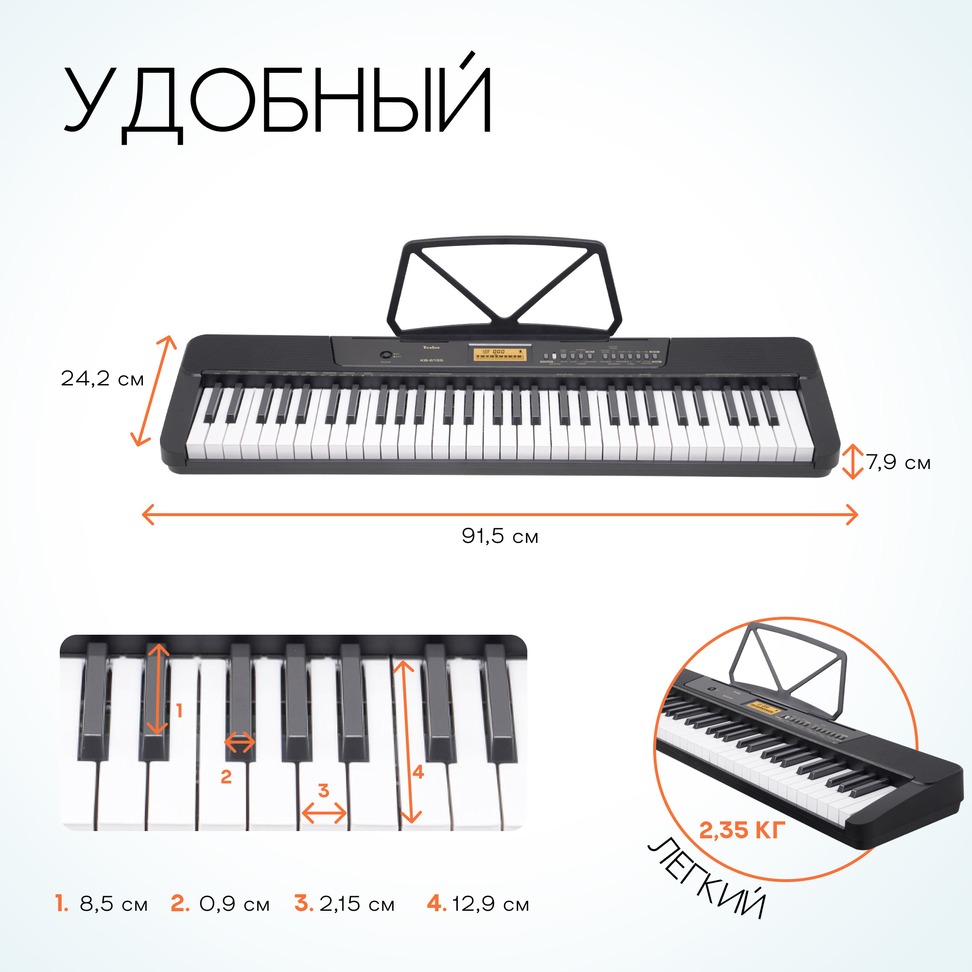 Синтезатор Tesler KB-6135 подходит для начального уровня благодаря понятному управлению и наличию обучающих программ.