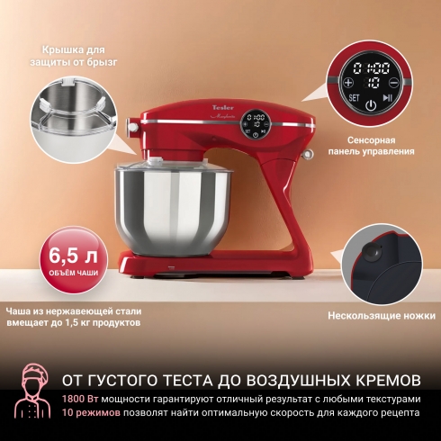 Планетарный миксер Tesler KM-1860 станет незаменимым помощником на вашей кухне. Порадуйте себя и своих близких кулинарными шедеврами, созданными с помощью этого надежного и функционального устройства!
