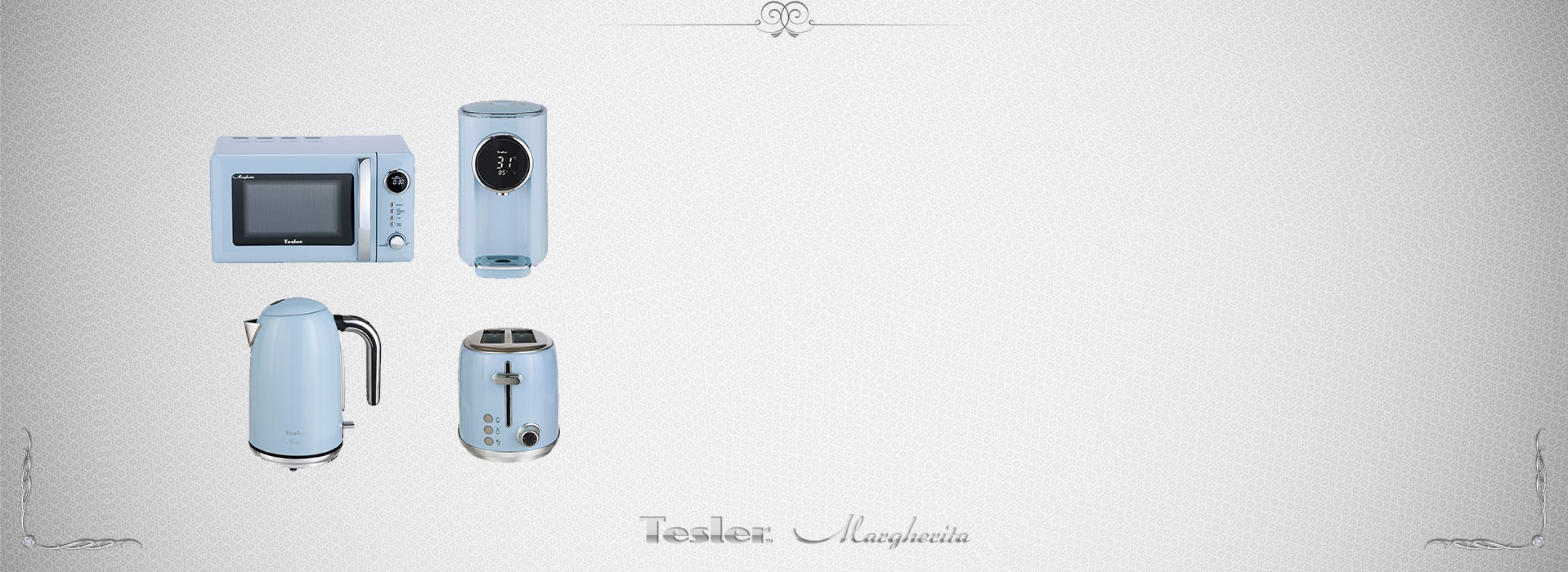 • В комплект кухонной техники Tesler Margherita входят 4 устройства: СВЧ-печь, чайник, тостер и термопот.