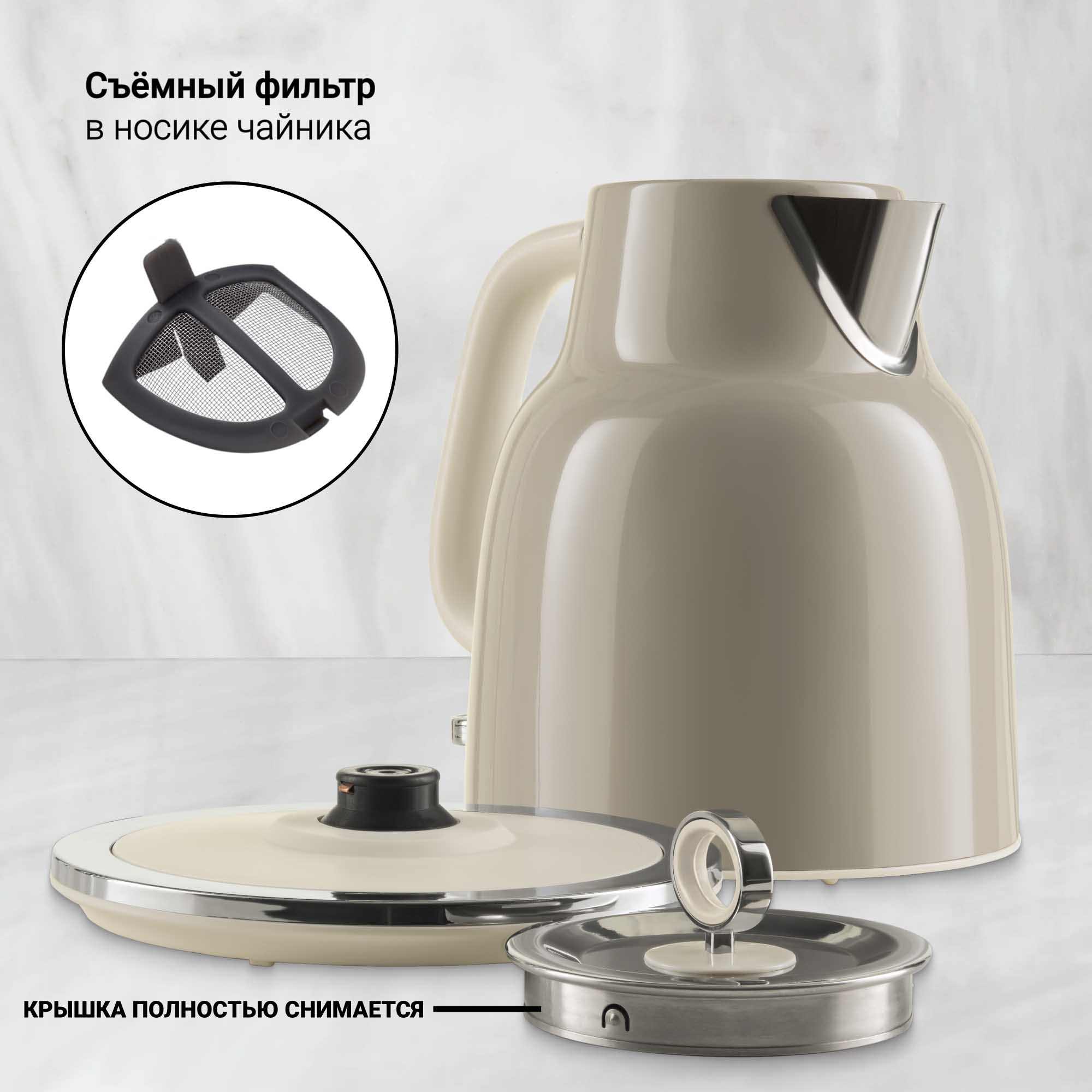 Крышка чайника полностью снимается, что позволит легко очистить его от накипи в случае необходимости.