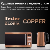 В комплект кухонной техники Tesler Gloria в медном цвете также входит электрический чайник KT-1710 COPPER ёмкостью 1,7 л. Оба прибора идеально сочетаются между собой, и добавят яркого тепла вашему кухонному интерьеру.