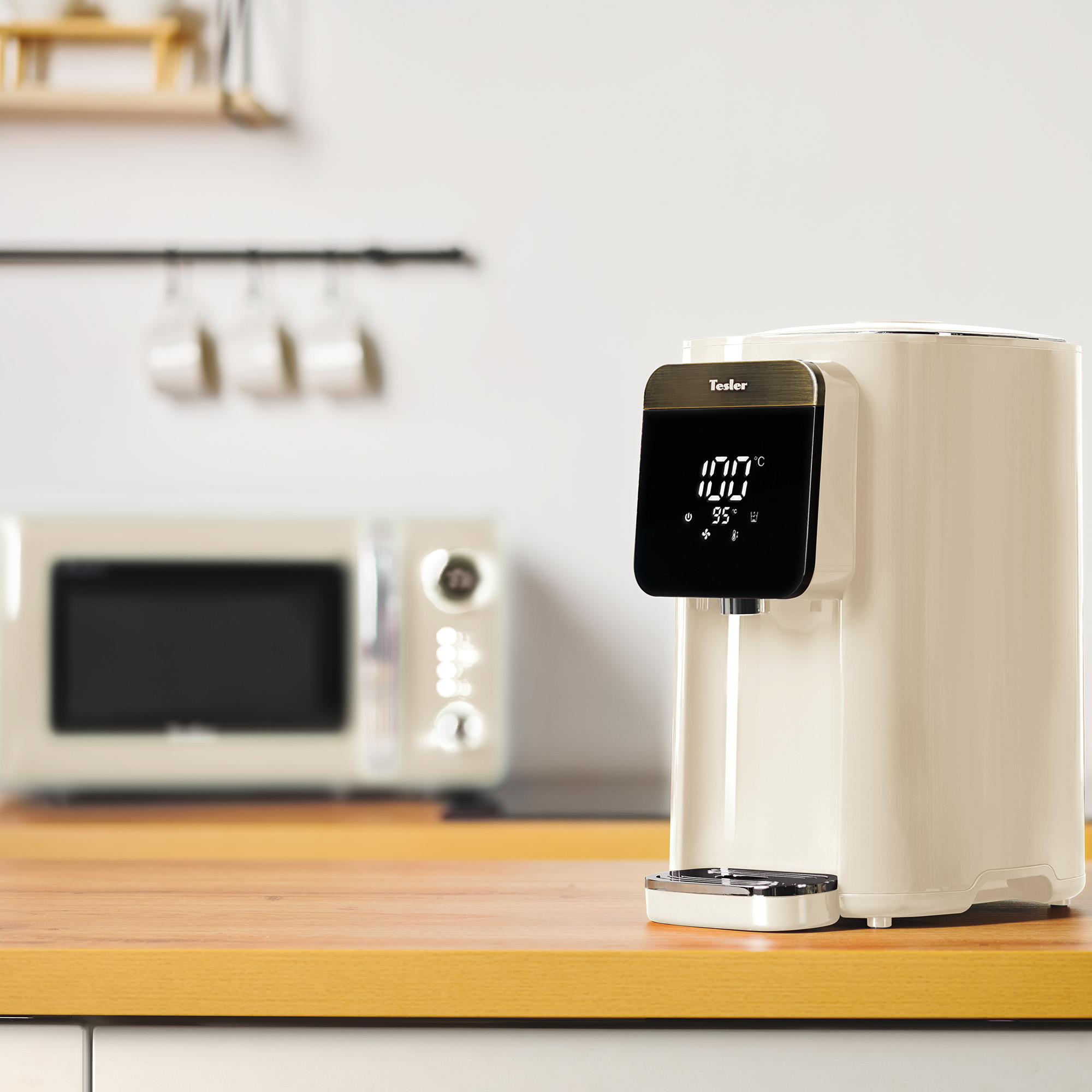 Создать уют и комфортные условия на кухне поможет устройство, сочетающее в себе функции чайника, кулера и диспенсера для воды - термопот. Имея достаточный объем запаса воды - 5 литров, термопот Tesler Margherita TP-5055 может служить в качестве устройства для кипячения и подогрева воды, поддержания температуры и даже охлаждения жидкости. Информативный светодиодный LED дисплей выполнен на черном матовом фоне, окантованом хромированной круглой накладкой, отображает текущую и заданную температуру воды и рабочий режим. Цвет дисплея белый - мягкий и теплый, отлично сочетается с любый цветом, доступным в линейке Tesler Margherita.