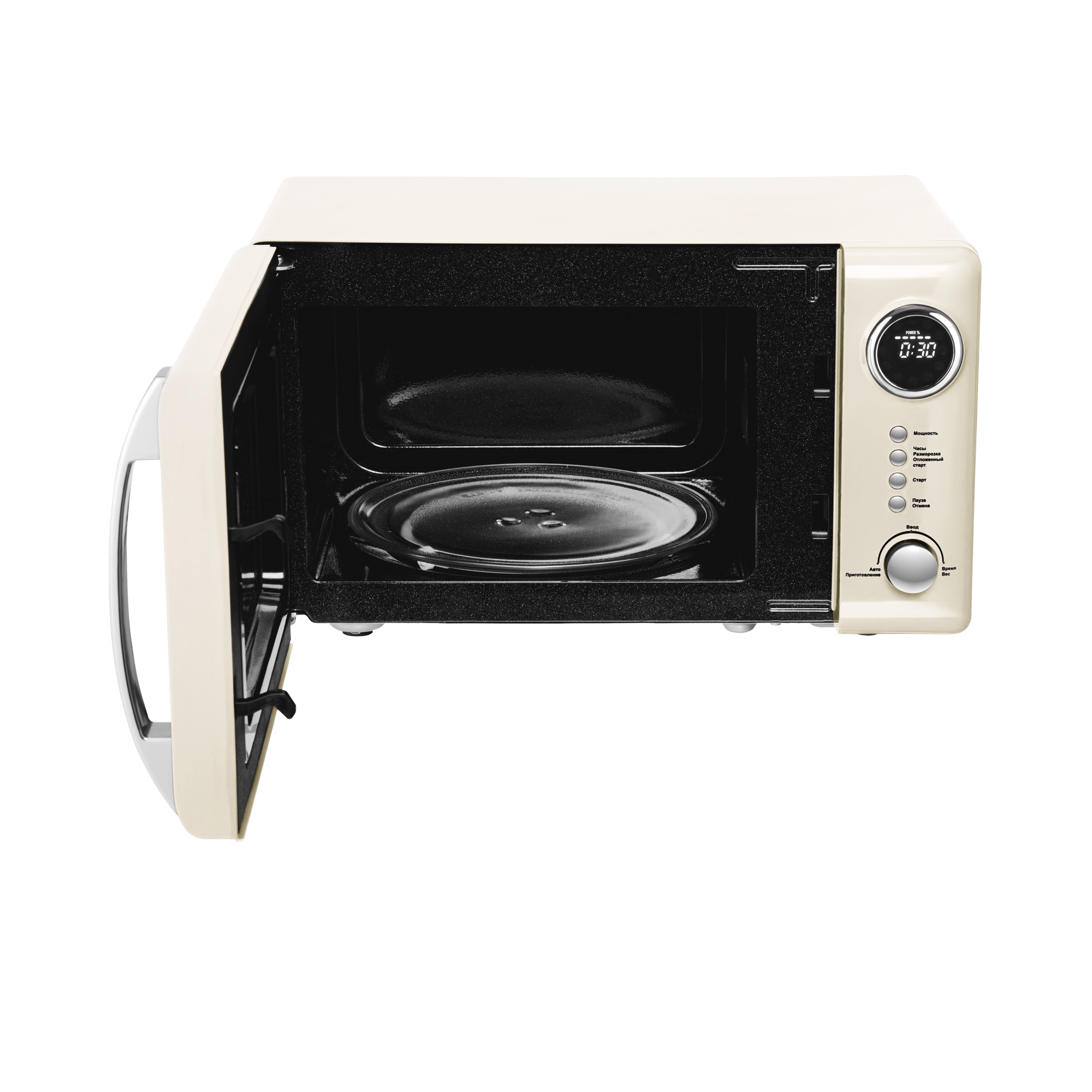 Простота управления не отменяет широкие возможности приготовления - предусмотрено 12 автоматических режимов, авторазморозка и функция отложенного старта. Вы также можете добавить дополнительное время уже в процессе разогрева пищи.
