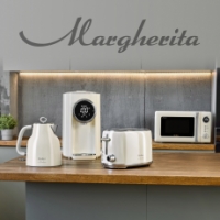 В комплект кухонной техники Tesler Margherita входят 4 устройства: СВЧ-печь, чайник, тостер и термопот.