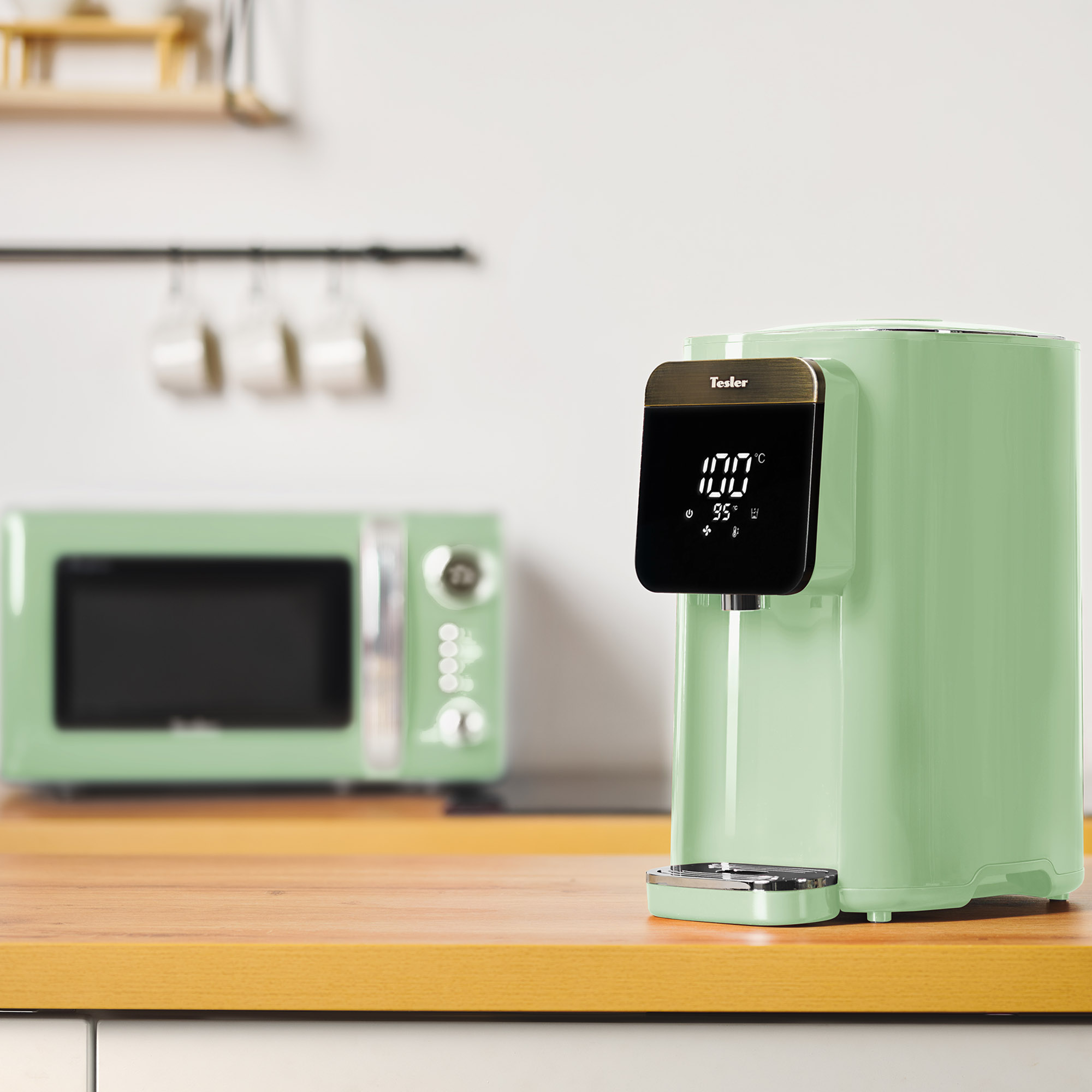 В комплект кухонной техники Tesler Margherita входят 4 устройства: СВЧ-печь, чайник, тостер и термопот.