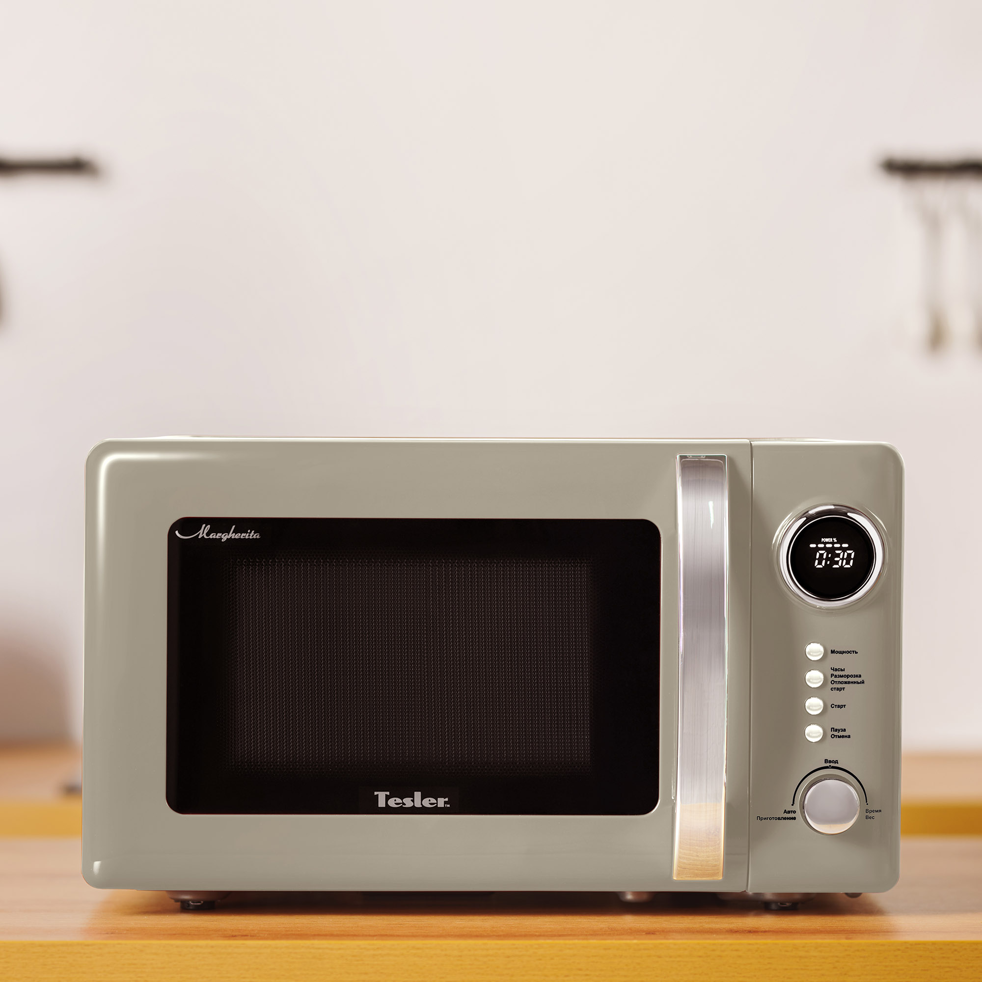 Микроволновую печь Margherita можно приобрести в красном, бежевом, зеленом и песочно-сером цвете.