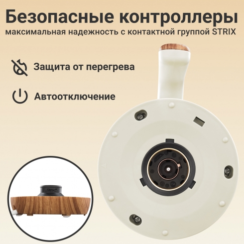 Встроенный контроллер Strix (Великобритания) обеспечивает безопасность при работе и долговечность прибора. Предусмотрена защита от перегрева и автоотключение.