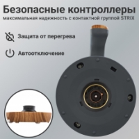 Встроенный контроллер Strix (Великобритания) обеспечивает безопасность при работе и долговечность прибора. Предусмотрена защита от перегрева и автоотключение.