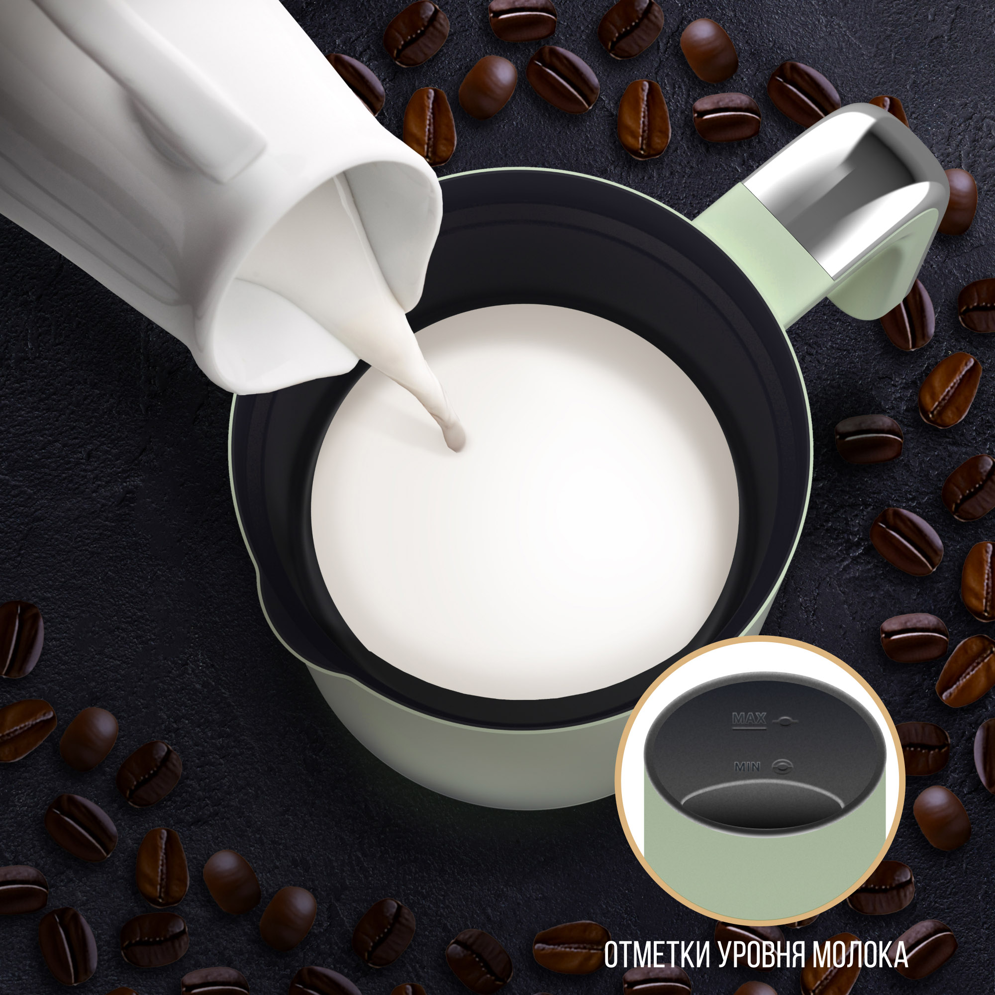 • Объем в 240 мл подходит для приготовления молочной пены на 1-2 порции кофе.