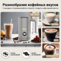 Вспениватель молока MF-260 поможет приготовить классический капучино, латте или макиато всего за пару минут без лишних хлопот! Этот компактный и мощный прибор предлагает 4 различных режима работы: Плотная пенка, Легкая пенка, Подогрев и Вспенивание без подогрева, позволяя вам получить именно ту текстуру и температуру пены, которая вам нужна.