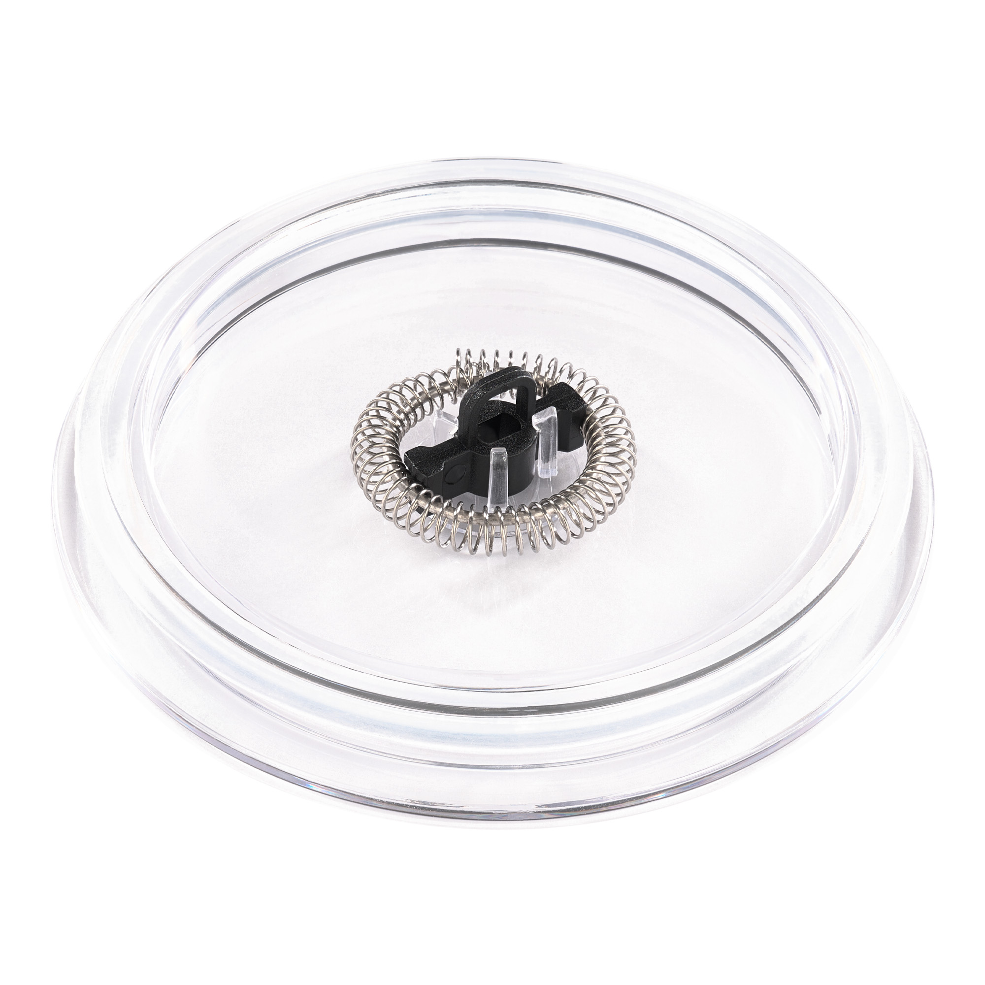 Крышка прибора оснащена специальным силиконовым кольцом, которое обеспечивает её герметичное прилегание и надежную фиксацию во время процесса вспенивания. На крышке располагается удобный держатель для насадок.