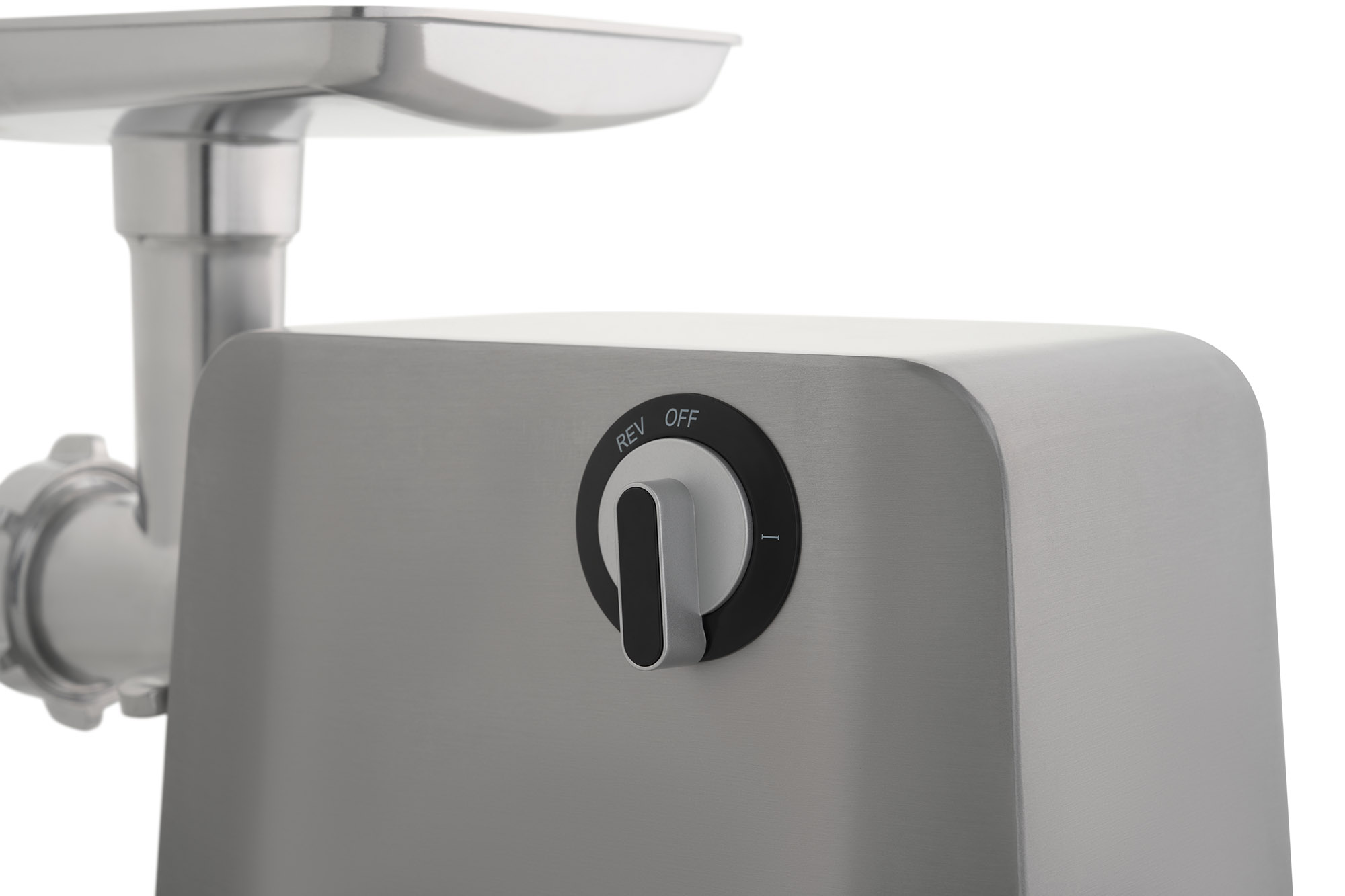 Больше не нужно разбирать мясорубку, чтобы провести очистку рабочего отсека от излишков мяса: функция реверса запустит обратный ход шнека. При этом масса продуктов перераспределится, и прибор будет готов к дальнейшему использованию.