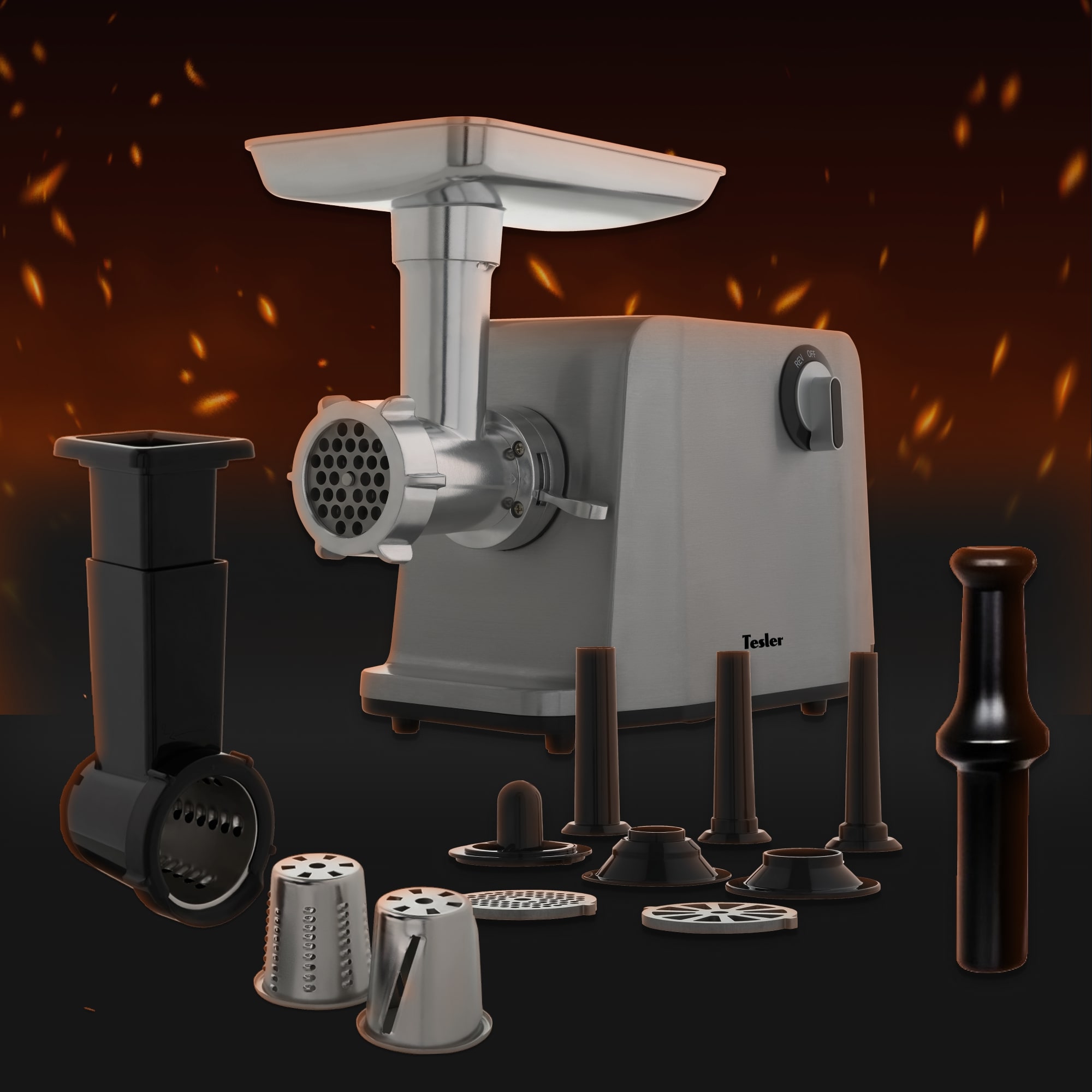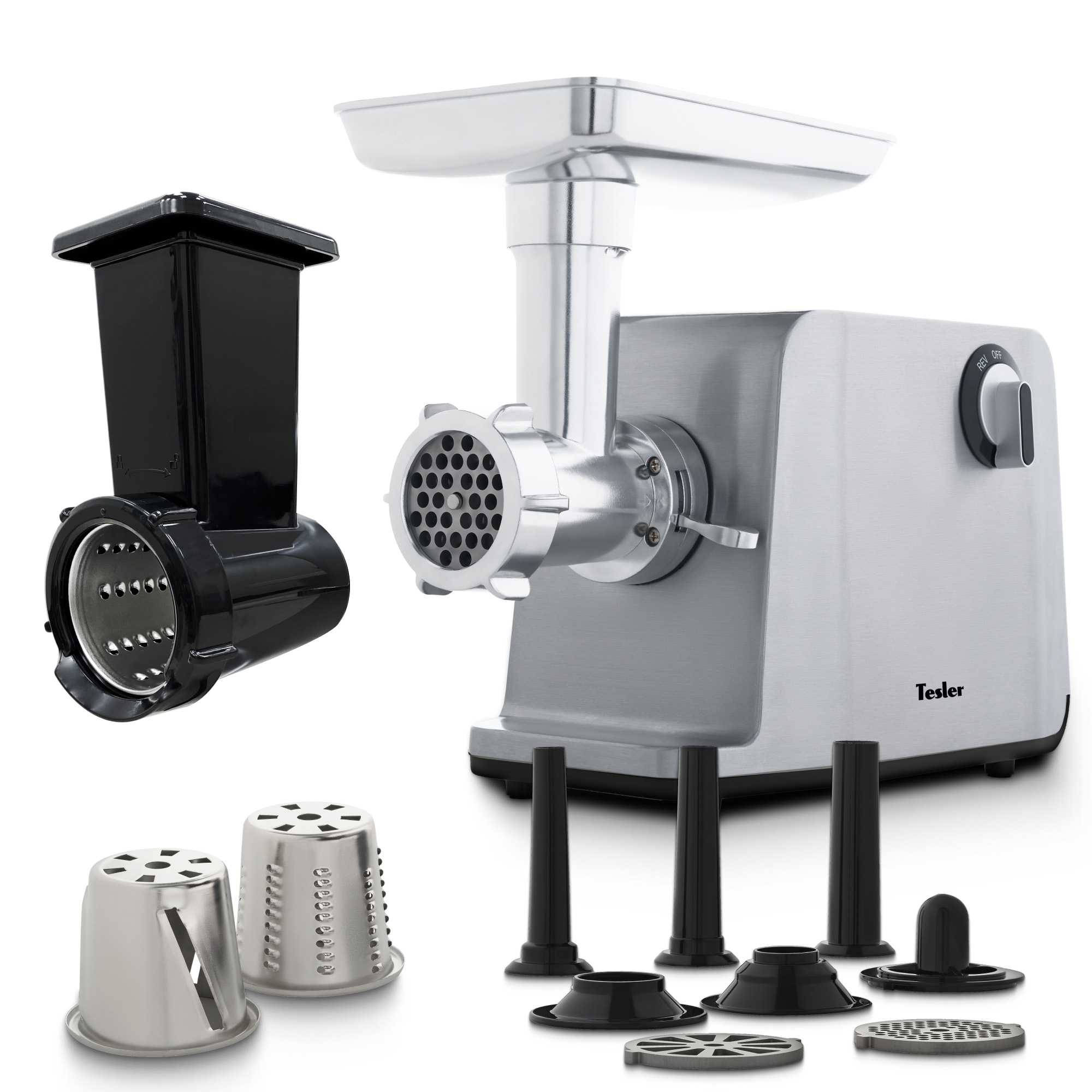 Электрическая мясорубка TESLER MG-1802C пригодится не только для приготовления фарша, но и чтобы измельчить овощи для салатов и заготовок, а также фрукты для десертов и пюре. Для этого воспользуйтесь овощерезкой, в которую можно установить насадку-шинковку, либо насадку-тёрку с крупными или мелкими отверстиями.