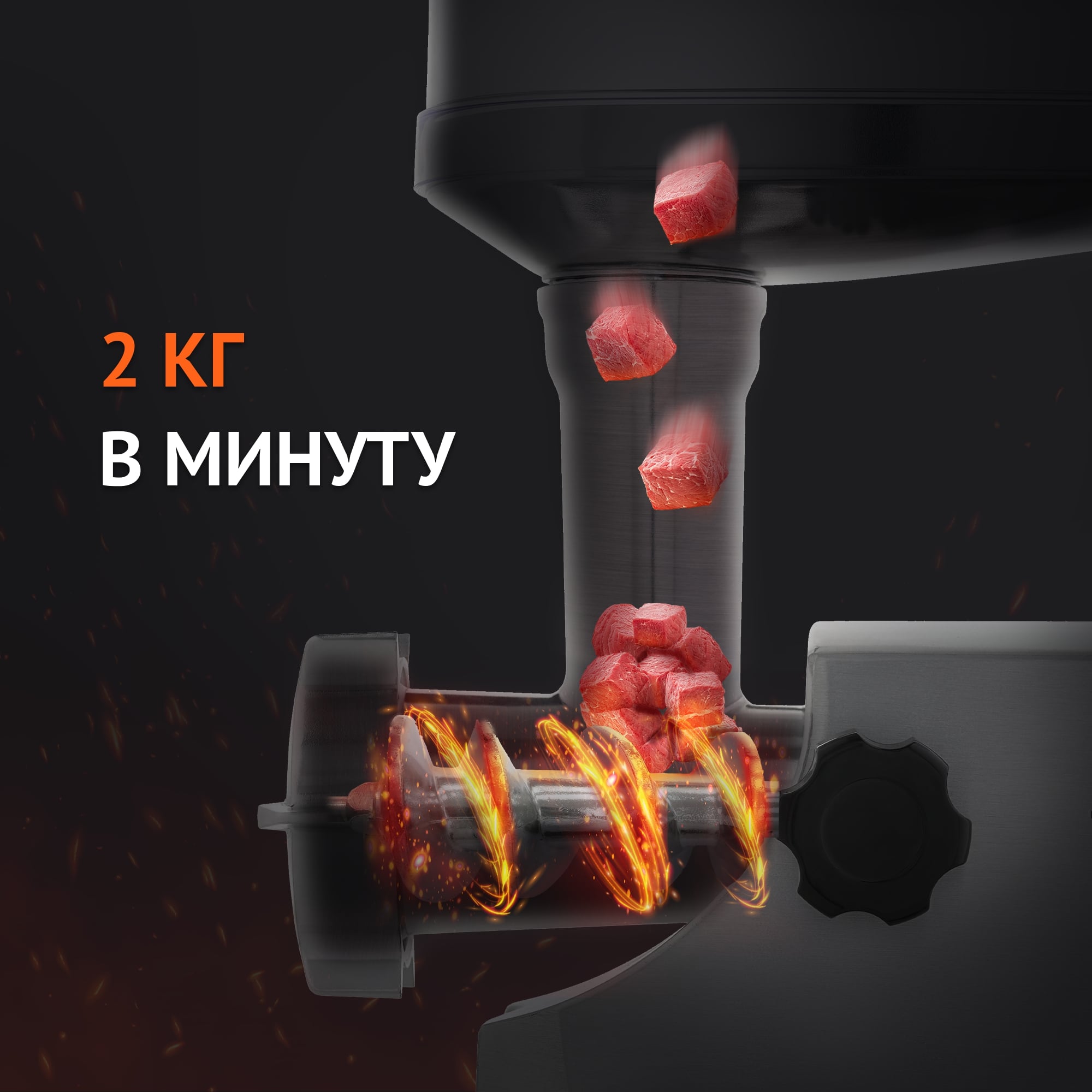 Мощный двигатель обеспечивает высокую производительность прибора, благодаря чему вы можете обработать 2 кг фарша в минуту и сэкономить время.