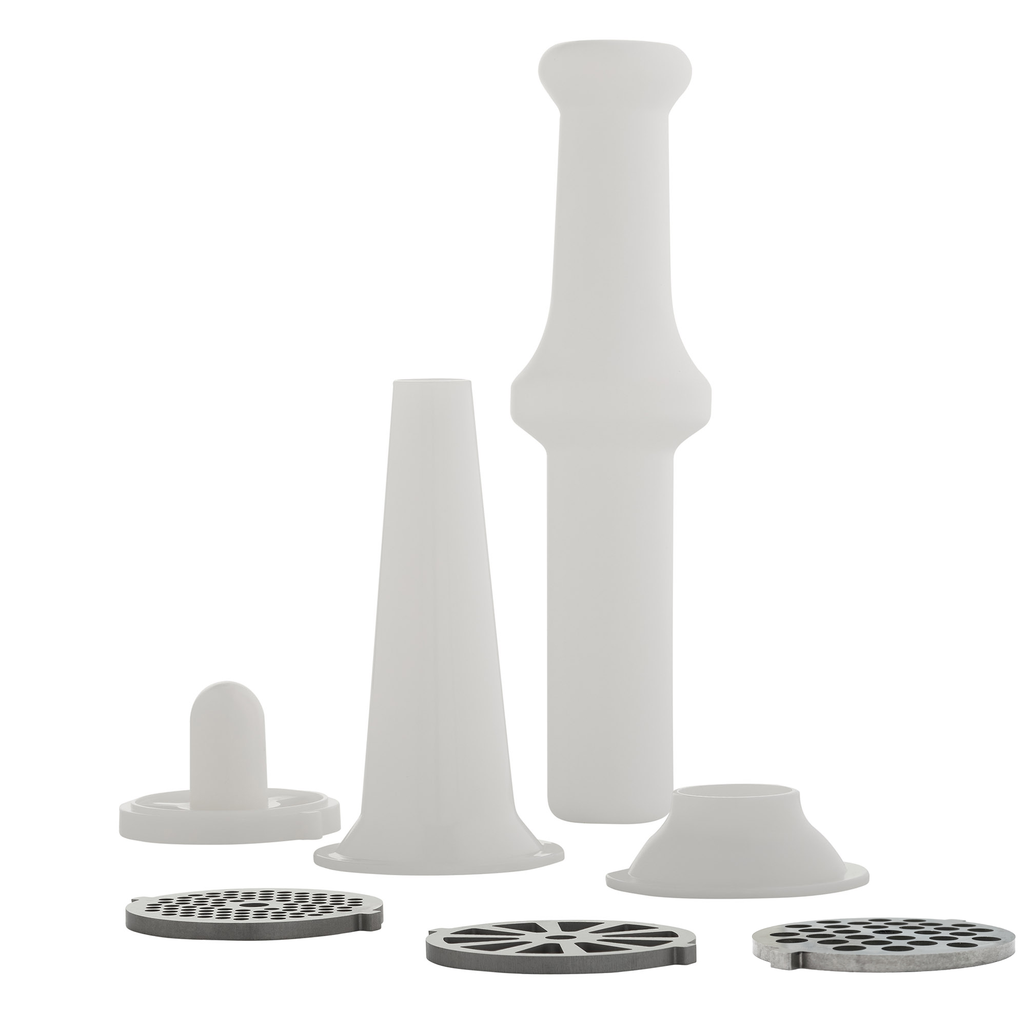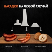 Приготовить сосиски, колбасы и восточные котлетки кеббе не составит труда благодаря 2-м специальным насадкам.