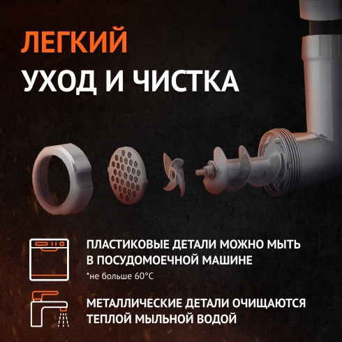 Мощный двигатель постоянного тока справляется даже с повышенными нагрузками, эффективно преодолевая сопротивление жестких, жилистых кусков мяса. Благодаря высокой производительности прибора вы можете обработать до 1,8 кг мяса в минуту, и сэкономить время.