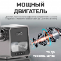 Мощный двигатель постоянного тока эффективно справляется с высокими нагрузками, позволяя обработать до 1,6 кг мяса в минуту. Он легко преодолевает сопротивление жилистых кусков мяса, и имеет защиту от перегрева, что продлевает срок службы прибора. 2 скорости работы позволят использовать оптимальный режим для разных продуктов. Минимальная скорость подходит для отварных продуктов, куриного филе и рыбы, мягких овощей. Чтобы сделать фарш из красного мяса установите максимальную скорость.