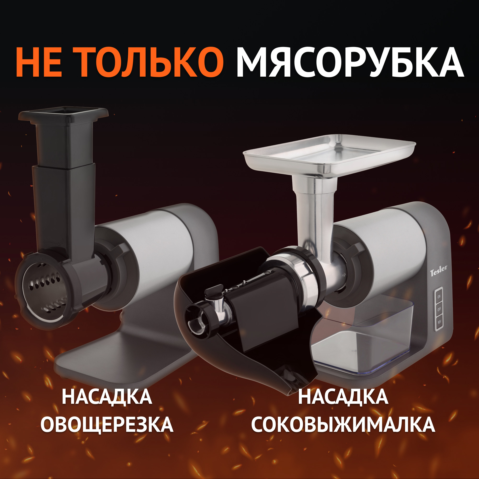 Электрическая мясорубка TESLER MG-2003TC DC пригодится не только для приготовления фарша, но и чтобы измельчить овощи для салатов и заготовок, а также фрукты для десертов и пюре. Для этого воспользуйтесь овощерезкой, в которую можно установить насадку-шинковку, либо насадку-тёрку с крупными или мелкими отверстиями. Кроме того, модель дополнена блоком для отжима сока из фруктов и овощей.