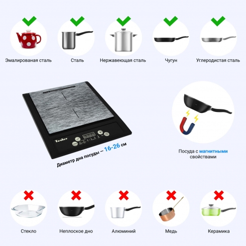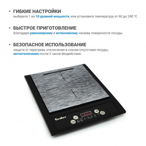 Компактную индукционную плитку TESLER PI-13 можно использовать для приготовления или разогрева пищи в домашних условиях, на даче или в офисе. Варочная поверхность из стеклокерамики хорошо выглядит, быстро нагревается и за ней легко ухаживать.