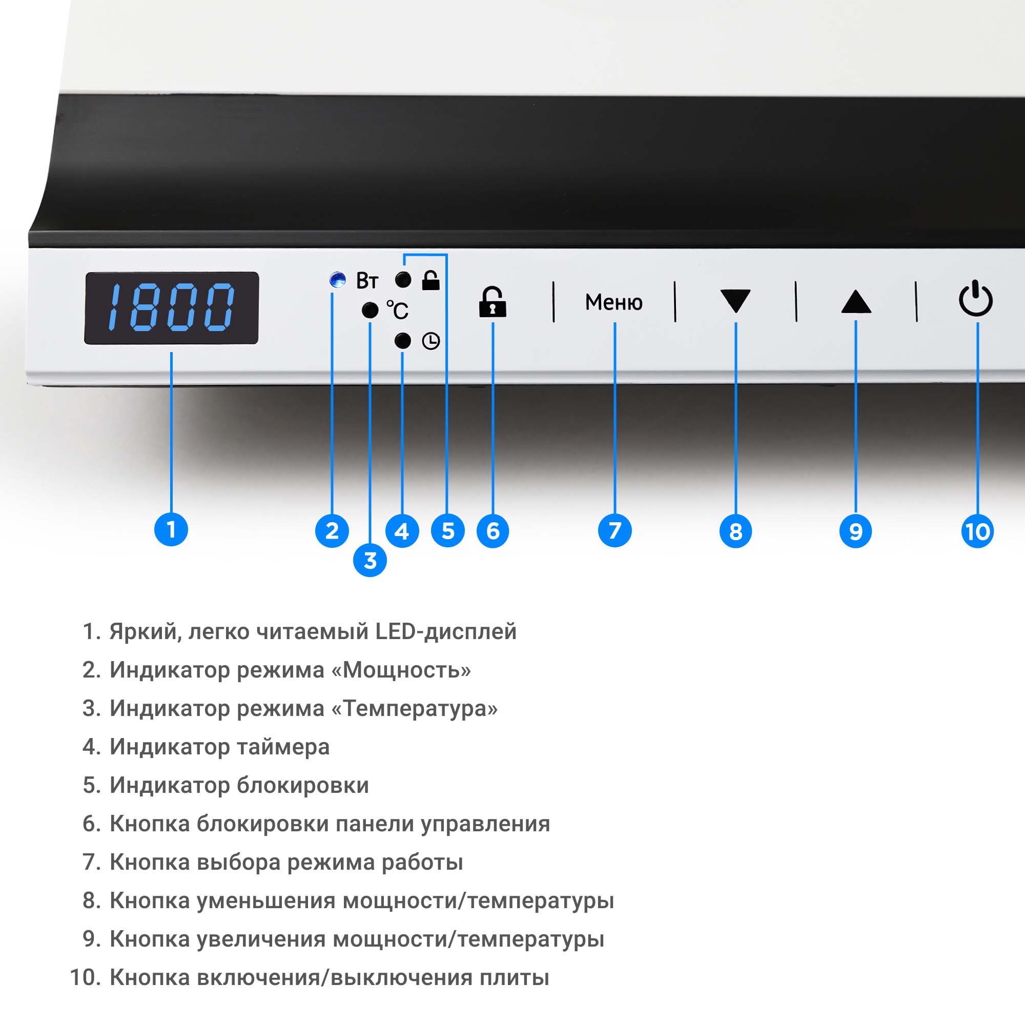 • Любое блюдо готовится быстрее, чем на обычной плите, благодаря максимально равномерному и интенсивному нагреву.