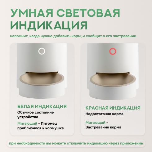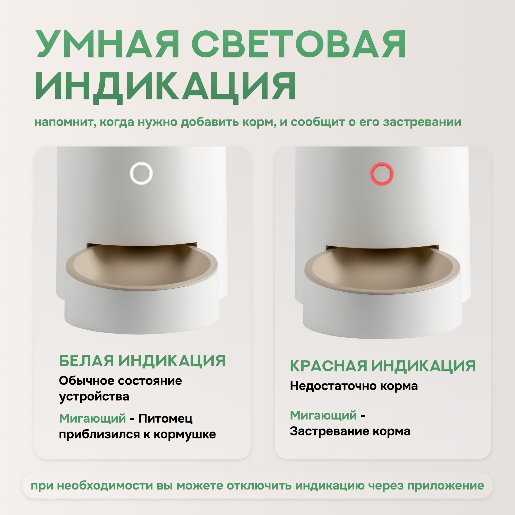 Выдача корма осуществляется как в ручном, так и в автоматическом режиме. Это особенно удобно во время вашего отсутствия, или если у вас нет возможности подавать пищу вручную в определенное время. Функция выдачи корма нажатием кнопки позволяет выдавать порцию 3-5 гр, количество единовременно выдаваемых порций можно настроить через приложение. Автокормушка PSF-001 позволяет контролировать диету животного и предотвратить переедание. Устройство разработано для подключения к домашнему Wi-Fi на частоте 2,4 ГГц.