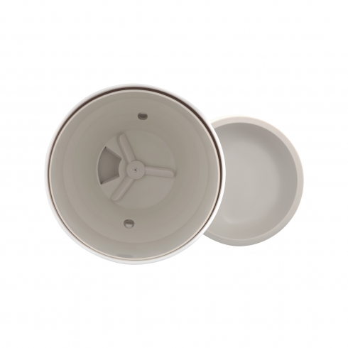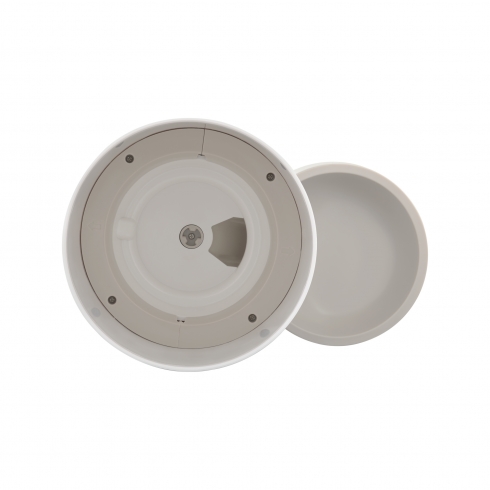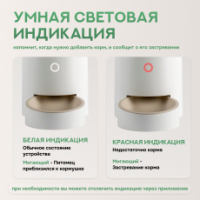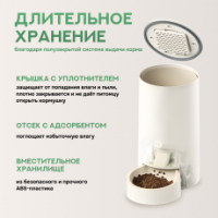 Закрытый корпус гарантирует свежесть корма, уменьшая его контакт с воздухом. Крышка с уплотнителем защищает устройство от попадания влаги и пыли в отсек для корма. Внутри крышки находится отсек с адсорбентом, который эффективно поглощает избыточную влагу. Верхняя часть отсека для корма имеет отметку максимального уровня, что позволяет контролировать объем насыпаемого корма.