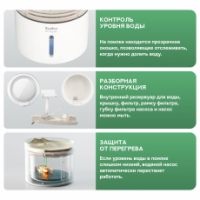 Световая индикация поможет определить текущий режим работы поилки и покажет, когда нужно долить воду. Кроме того, поилка напоминает о необходимости менять фильтр каждый месяц, обеспечивая здоровье ваших питомцев.