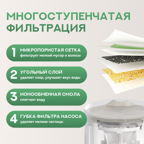 Автопоилка с датчиком приближения для животных Tesler PSW-001 обеспечит ваших питомцев свежей и чистой водой. Благодаря постоянной циркуляции вода не застаивается, а встроенный стерилизатор предотвращает её загрязнение. Трехступенчатая система фильтрации очищает воду от мелких частиц и примесей, смягчая её. В вашем распоряжении 2 режима подачи: в Обычном режиме вода подается постоянно, во время Интеллектуального режима подача осуществляется с 5-минутными интервалами.