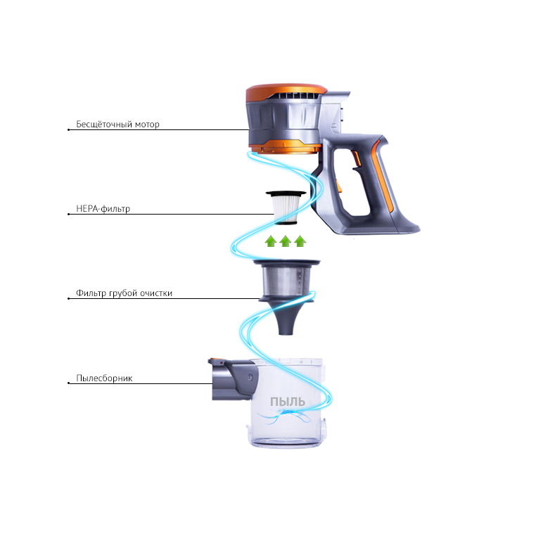 Бесколлекторный (бесщёточный) мотор нового поколения обеспечивает вертикальный беспроводной пылесос Tesler Pure Storm 3000 не только высокой мощностью всасывания пыли и грязи, но и отличными показателями эффективности за счет отсутствия трущихся элементов в составе двигателя. Управление мотором происходит с помощью цифрового контроллера, повышающего экономичность использования и долговечность пылесоса Tesler Pure Storm 3000.