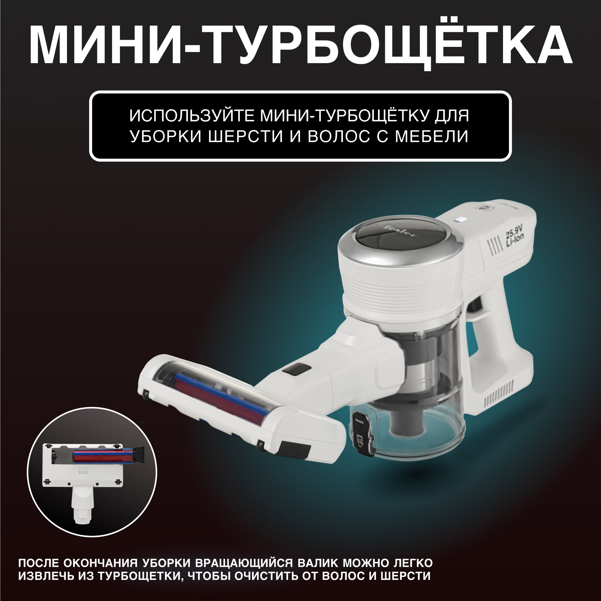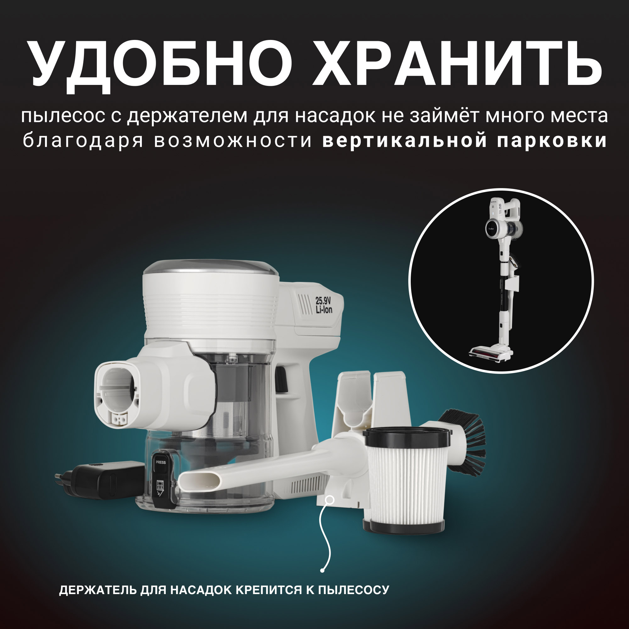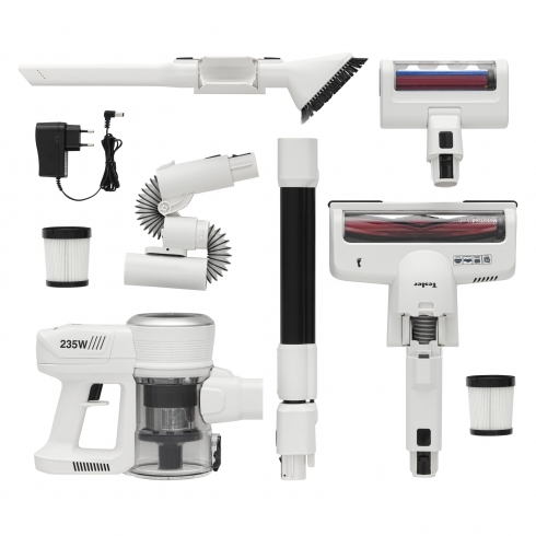 Беспроводной пылесос Tesler Pure Storm 5000 – это прибор 2в1. С установленной удлинительной трубой вы можете убираться на полу, а сняв её и сменив насадку, можно пропылесосить мебель, занавески, потолочные углы, или же убраться в своем автомобиле.