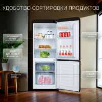 Съемные полки из закалённого стекла можно переставить удобным образом, а внизу холодильного отделения располагается вместительный ящик для овощей и фруктов. На дверце дополнительно расположены три удобных кармана, где можно расположить до 4-х бутылок или банок, небольшие контейнеры для продуктов, лоток для яиц, лекарства.