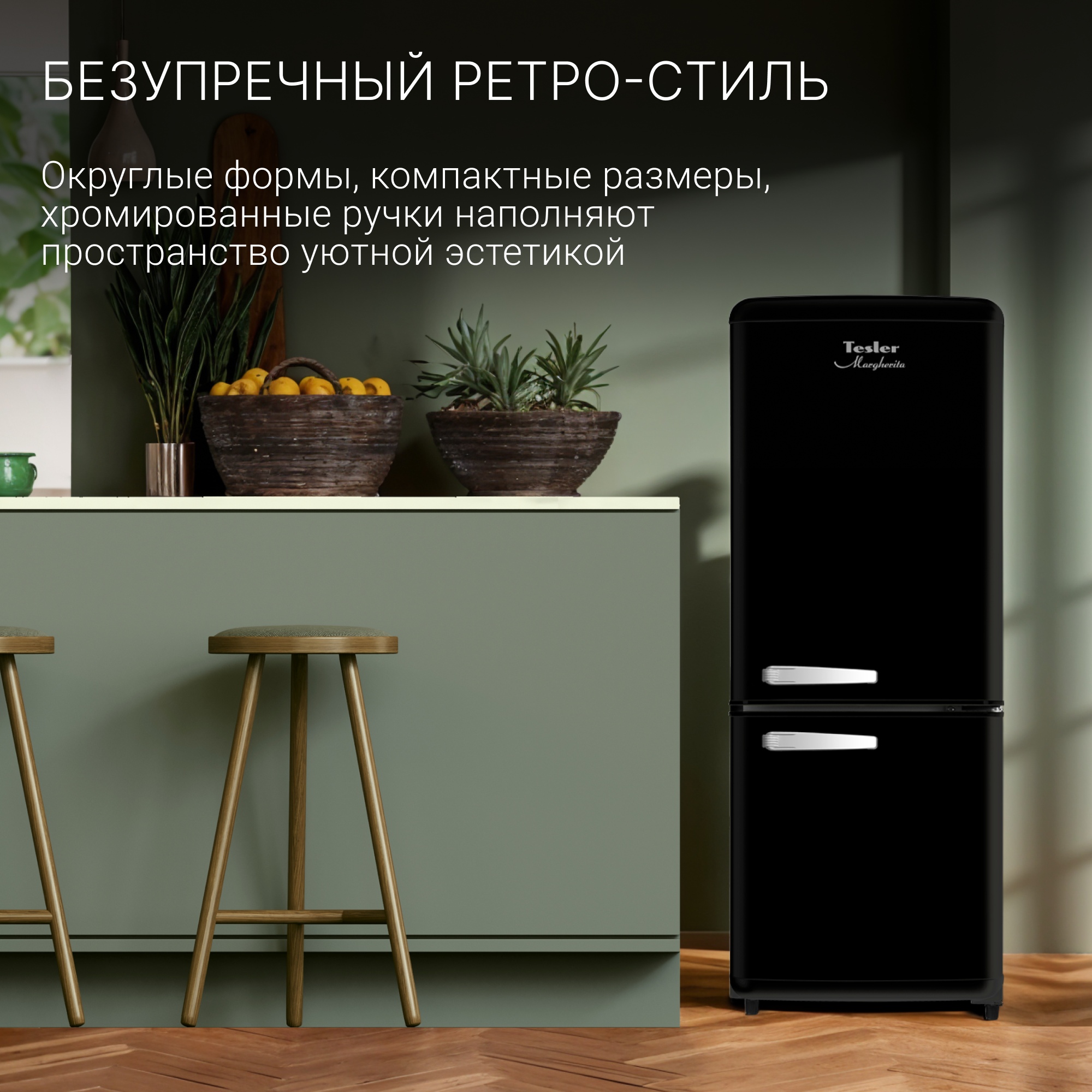 Элегантный двухкамерный холодильник Tesler RB-107 предлагает все необходимое для эффективного охлаждения продуктов.