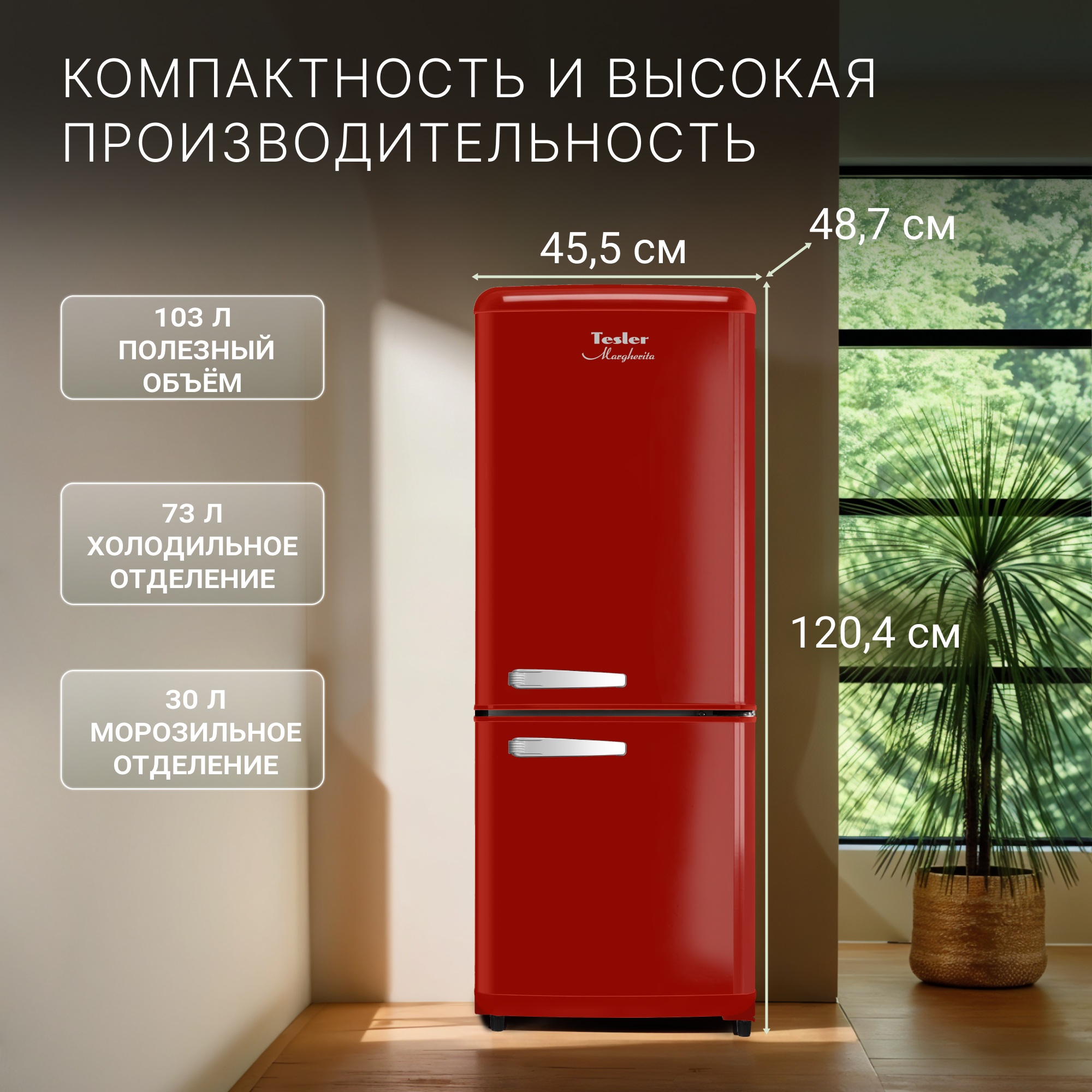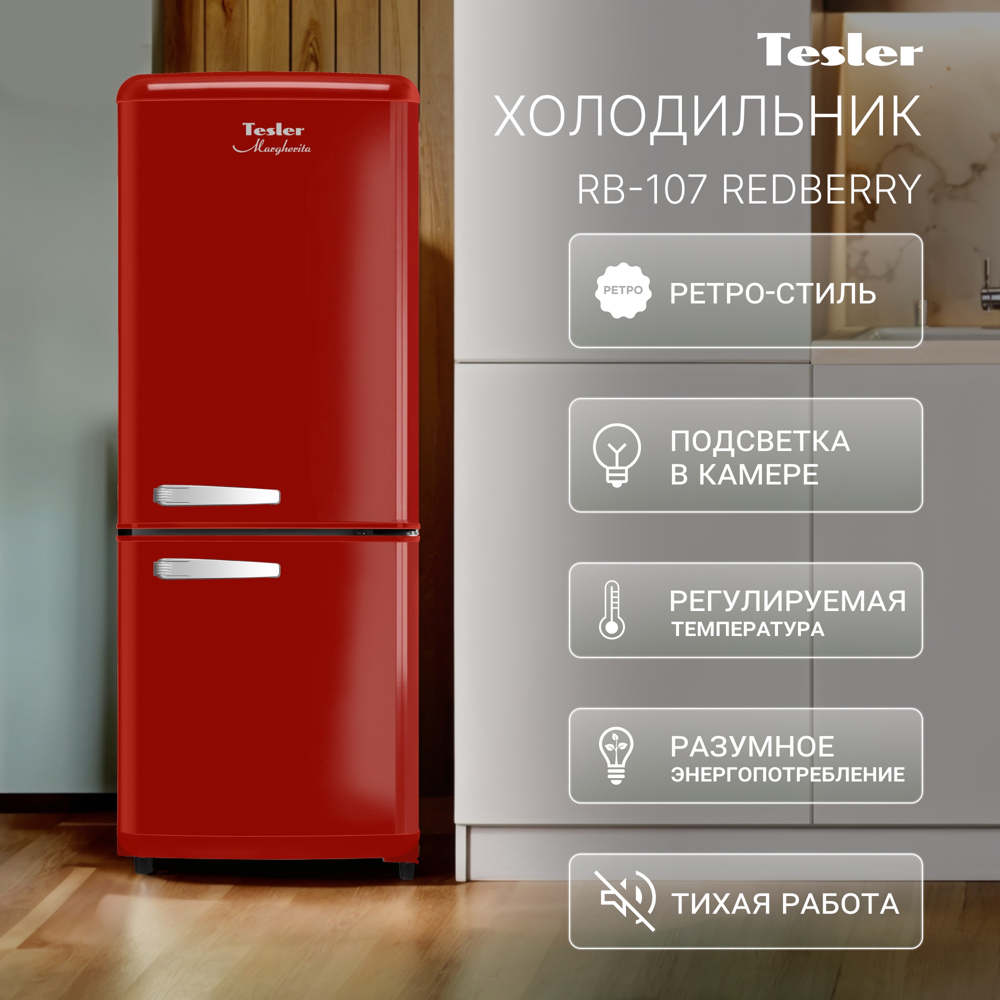 Элегантный двухкамерный холодильник Tesler RB-107 предлагает все необходимое для эффективного охлаждения продуктов.