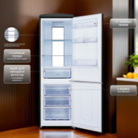 Модель оборудована инверторным компрессором. Благодаря использованию данной технологии холодильник отличается высокой энергоэффективностью и тихой работой.