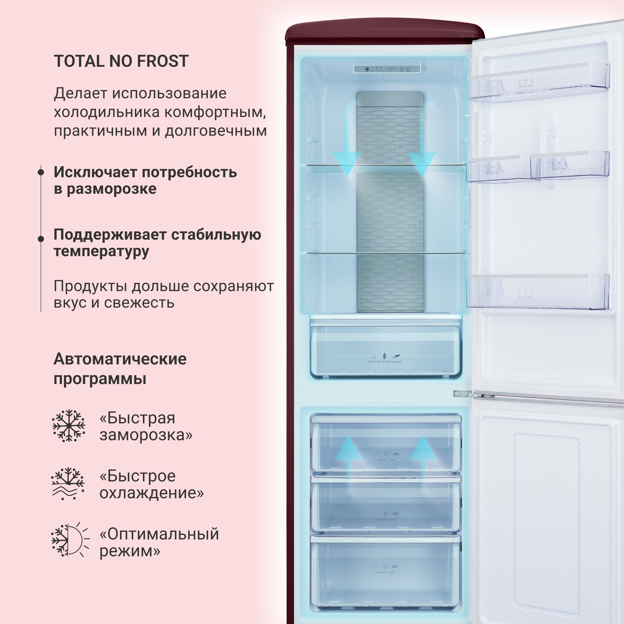 Tesler RB-335 оснащён системой охлаждения FULL NO FROST, которая избавляет от необходимости размораживания, поддерживает стабильную температуру, позволяя продуктам дольше сохранять вкусовые качества и свежесть.