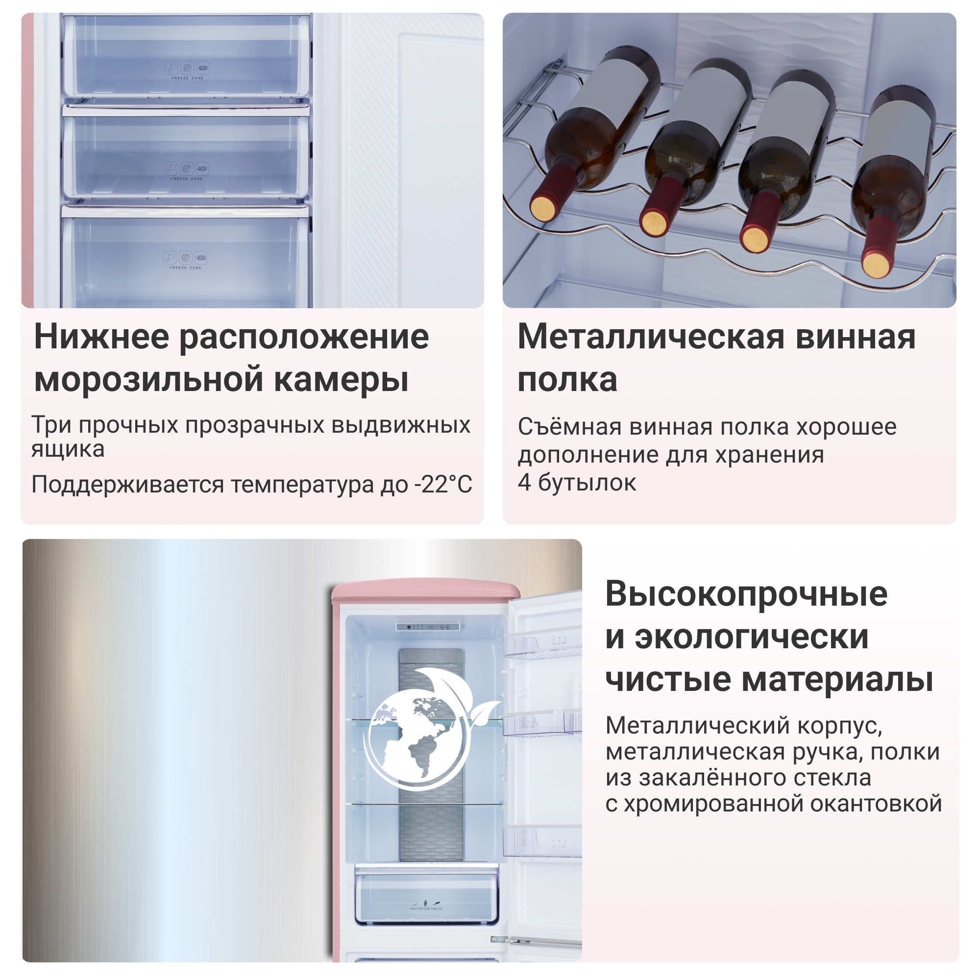 Холодильник с ретро-дизайном Tesler RB-335 это гармоничное сочетание стиля и современной функциональности. Модель, вдохновлённая эстетикой 60-х годов, станет ярким акцентом интерьера и подчеркнёт индивидуальность кухни. Лаконичные формы, оригинальные модные оттенки, литые металлические ручки придают холодильнику особый облик и уникальность.