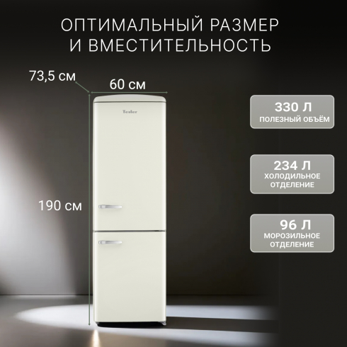 Ретро-холодильник Tesler RB-335 - это гармония эстетики и инноваций. Он создан для тех, кто ценит выразительный дизайн и современные технологии в равной степени. Стиль 60-х, проработанные детали и актуальный функционал делают эту модель идеальным выбором для интерьеров, где важны и форма и содержание.
