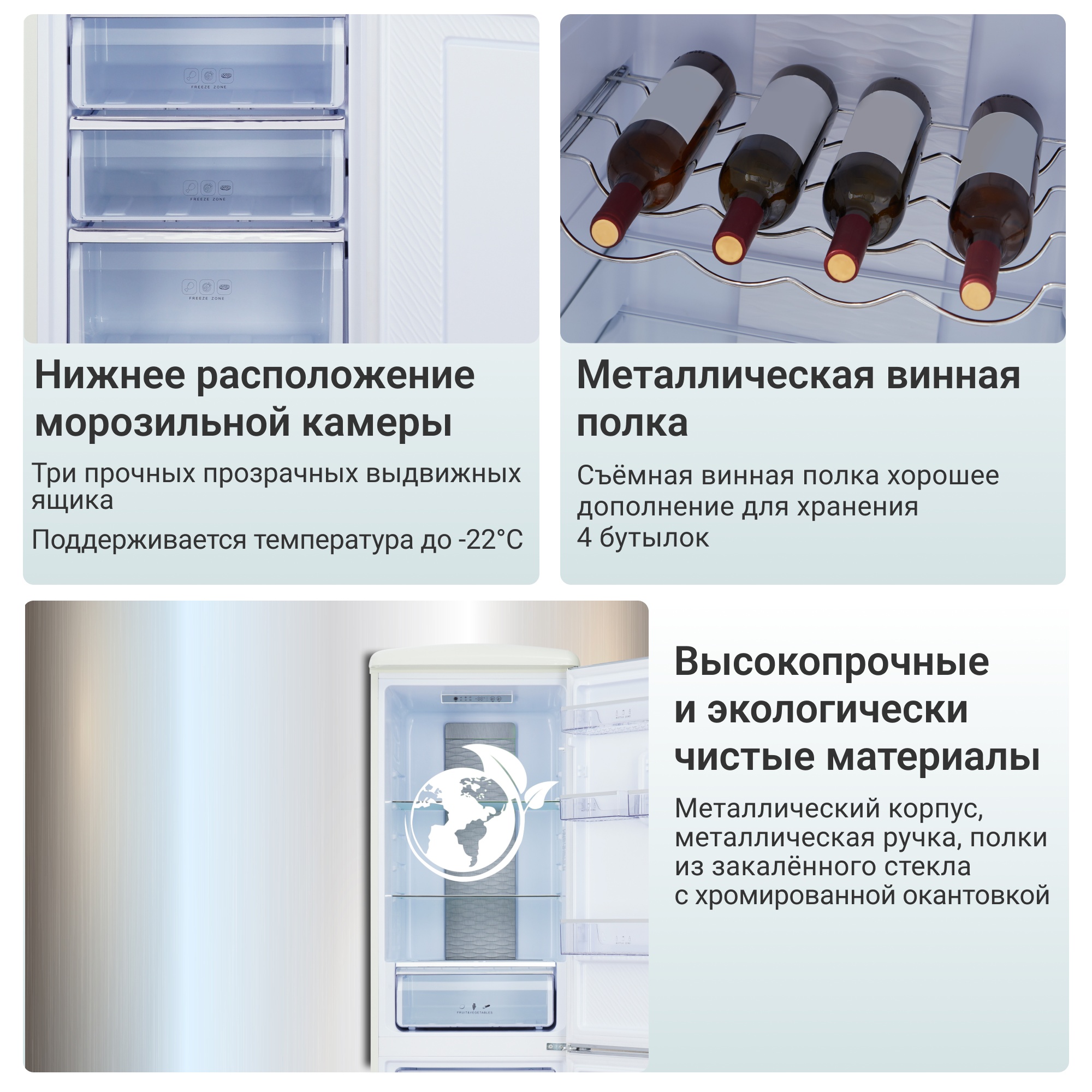 Холодильник с ретро-дизайном Tesler RB-335 это гармоничное сочетание стиля и современной функциональности. Модель, вдохновлённая эстетикой 60-х годов, станет ярким акцентом интерьера и подчеркнёт индивидуальность кухни. Лаконичные формы, оригинальные модные оттенки, литые металлические ручки придают холодильнику особый облик и уникальность.
