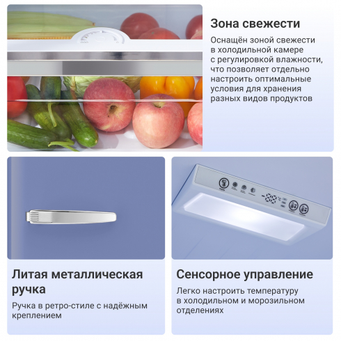 Холодильник с ретро-дизайном Tesler RB-335 это гармоничное сочетание стиля и современной функциональности. Модель, вдохновлённая эстетикой 60-х годов, станет ярким акцентом интерьера и подчеркнёт индивидуальность кухни. Лаконичные формы, оригинальные модные оттенки, литые металлические ручки придают холодильнику особый облик и уникальность.
